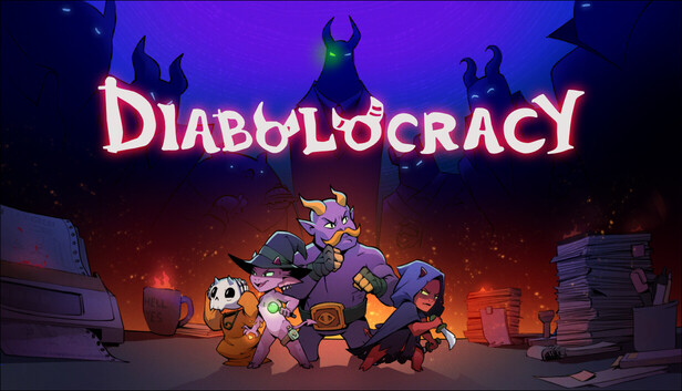 A logo that looks like a government seal but is an upside-down star inside a circle with strange symbols inside the circle. The text says Diabolocracy and "The Bureaucracy of Hell Runs On Violence".The Boss is trusting you to keep Hell running while he gets his unplanned, unscheduled R&R…and that means the other Sins are on their worst behavior. Gluttony has devoured the food supplies again, Pride won’t work with anyone, and Wrath won’t stop punching holes in everything. Let’s not even start on how Sloth is behind schedule, Lust is running HR or Greed is cooking the books!