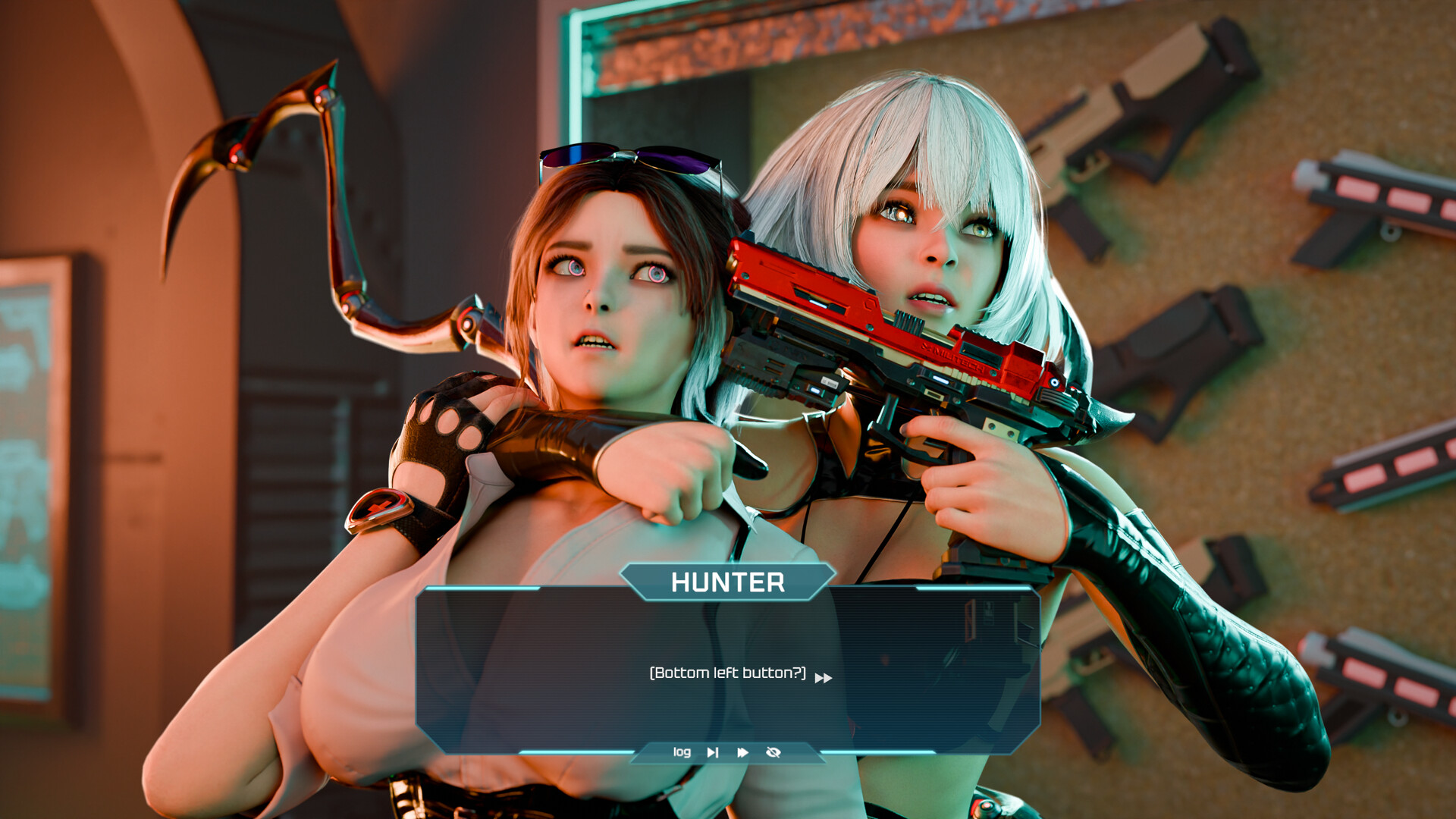 An adult visual novel set in a dark cyberpunk world with squad-management and investigation gameplay.