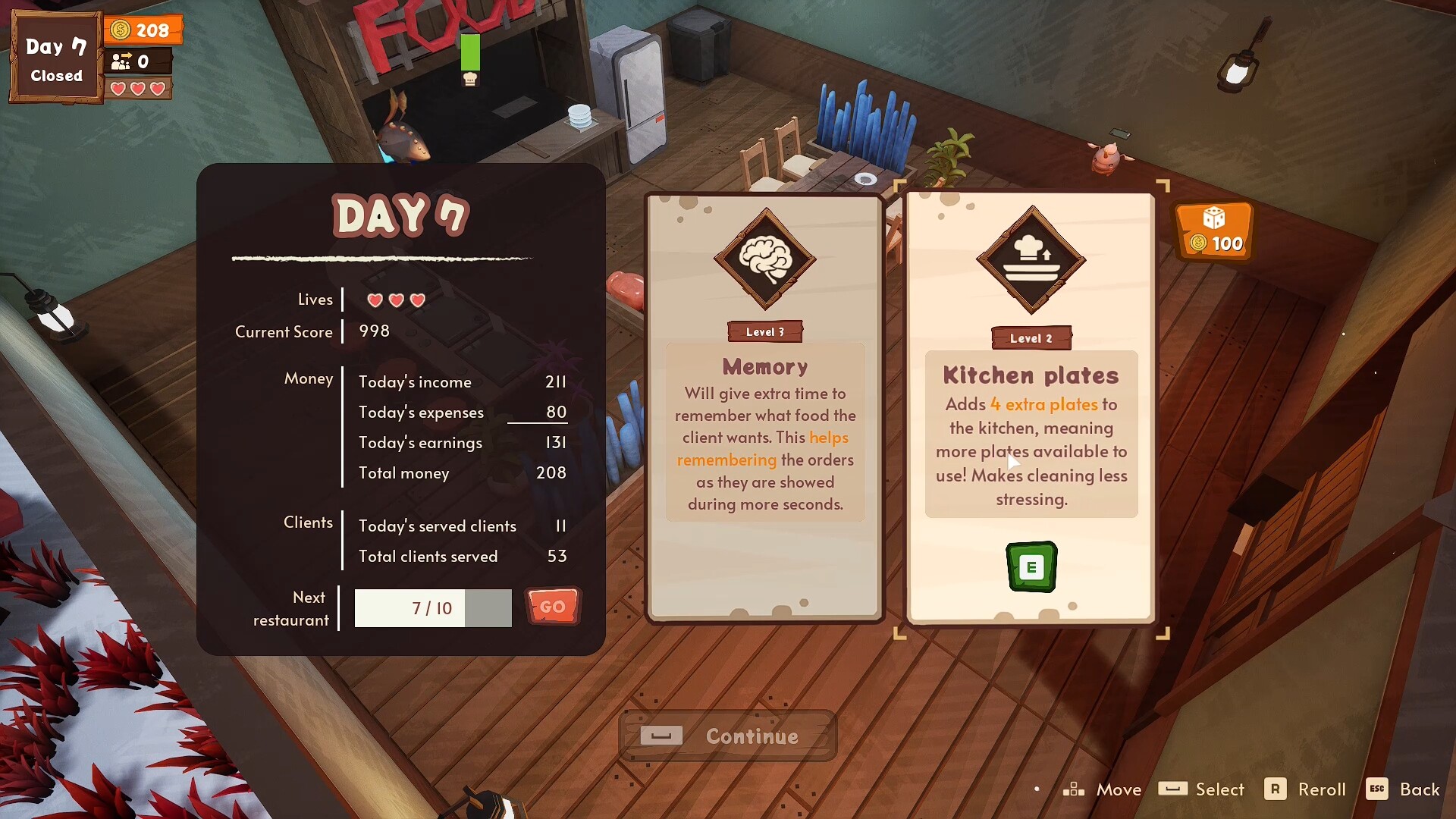Each day is a new shift: attend your customers and keep them happy to complete the day. Between shifts, you can get upgrades to make your next day smoother.