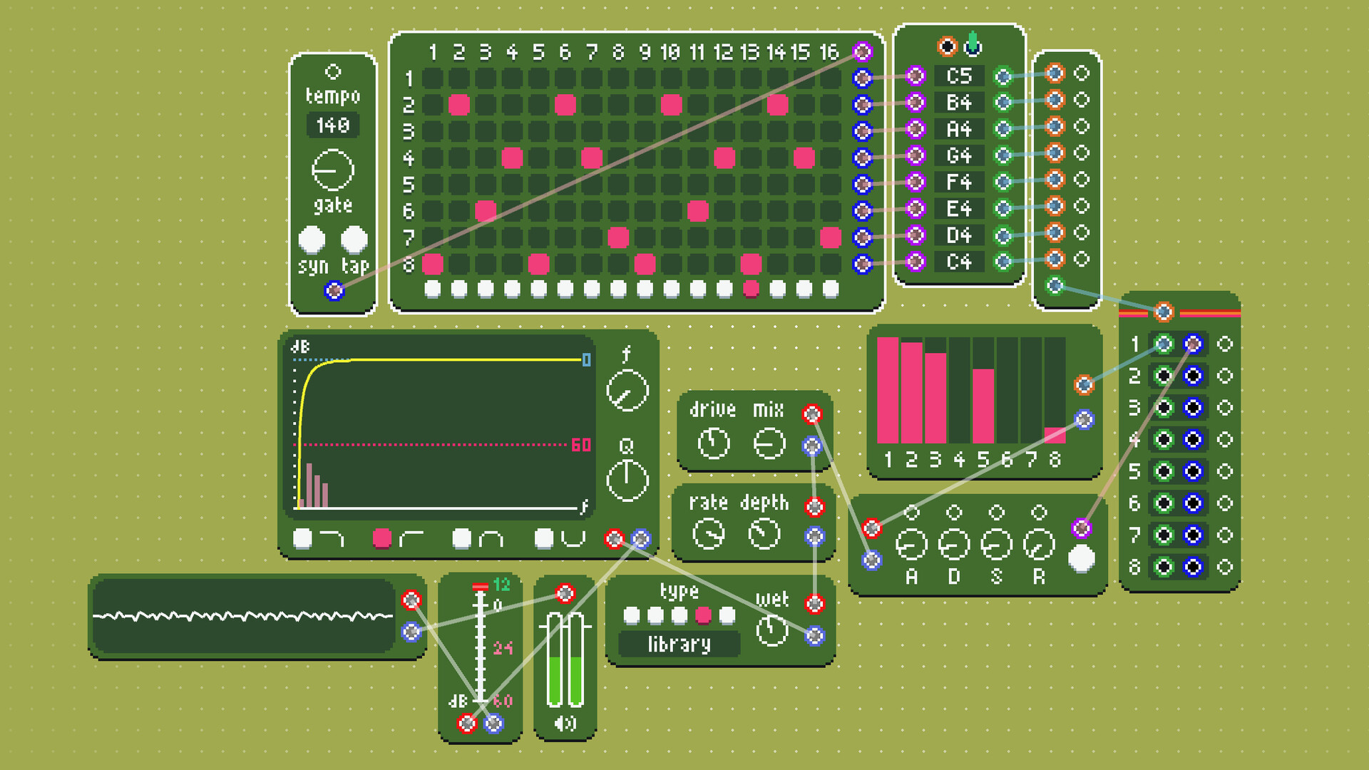 Wavewright is a modular music sandbox inspired by analog modular synths. Discover new ways to create music by tinkering with modules and connecting them together!