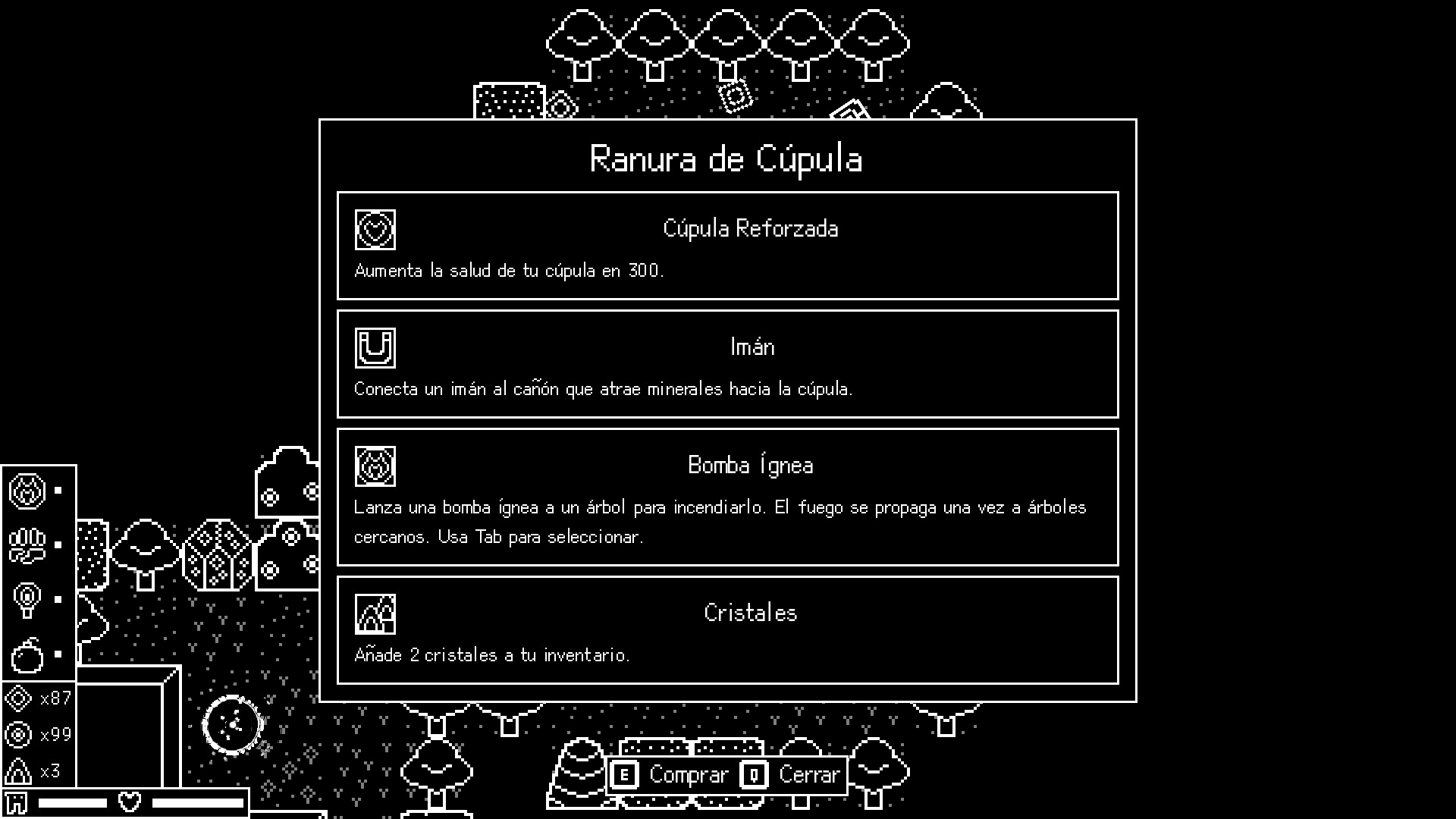 Juego de minería y defensa de torre roguelike de ciencia ficción. Excava un mundo generado proceduralmente para hallar artefactos y defiende tu nave de oleadas. Usa recursos para mejorar minería y combate.