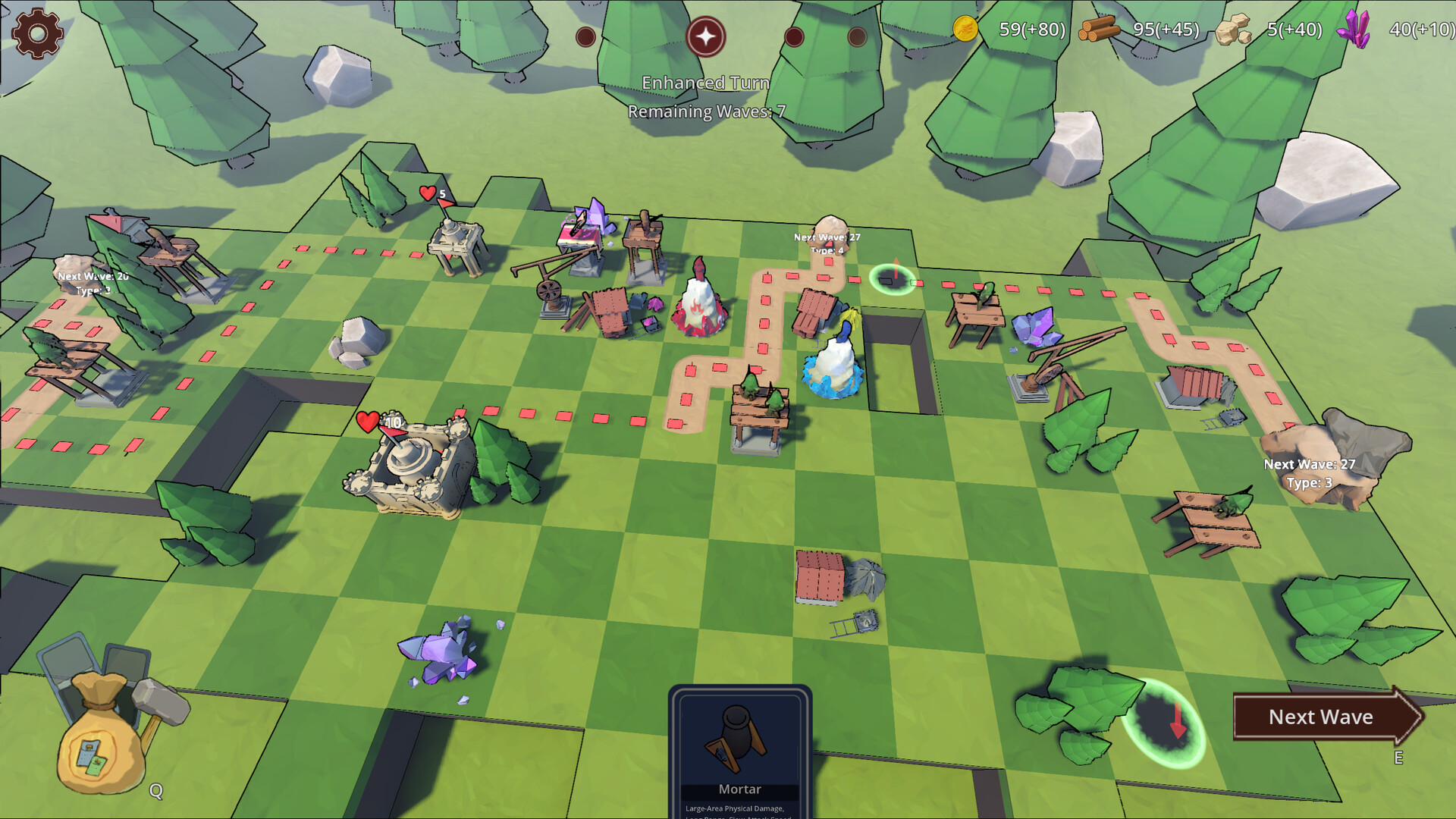 The board tiles change every round, creating countless possibilities. Can you adapt, use every terrain and resource wisely, and withstand endless waves of enemies?