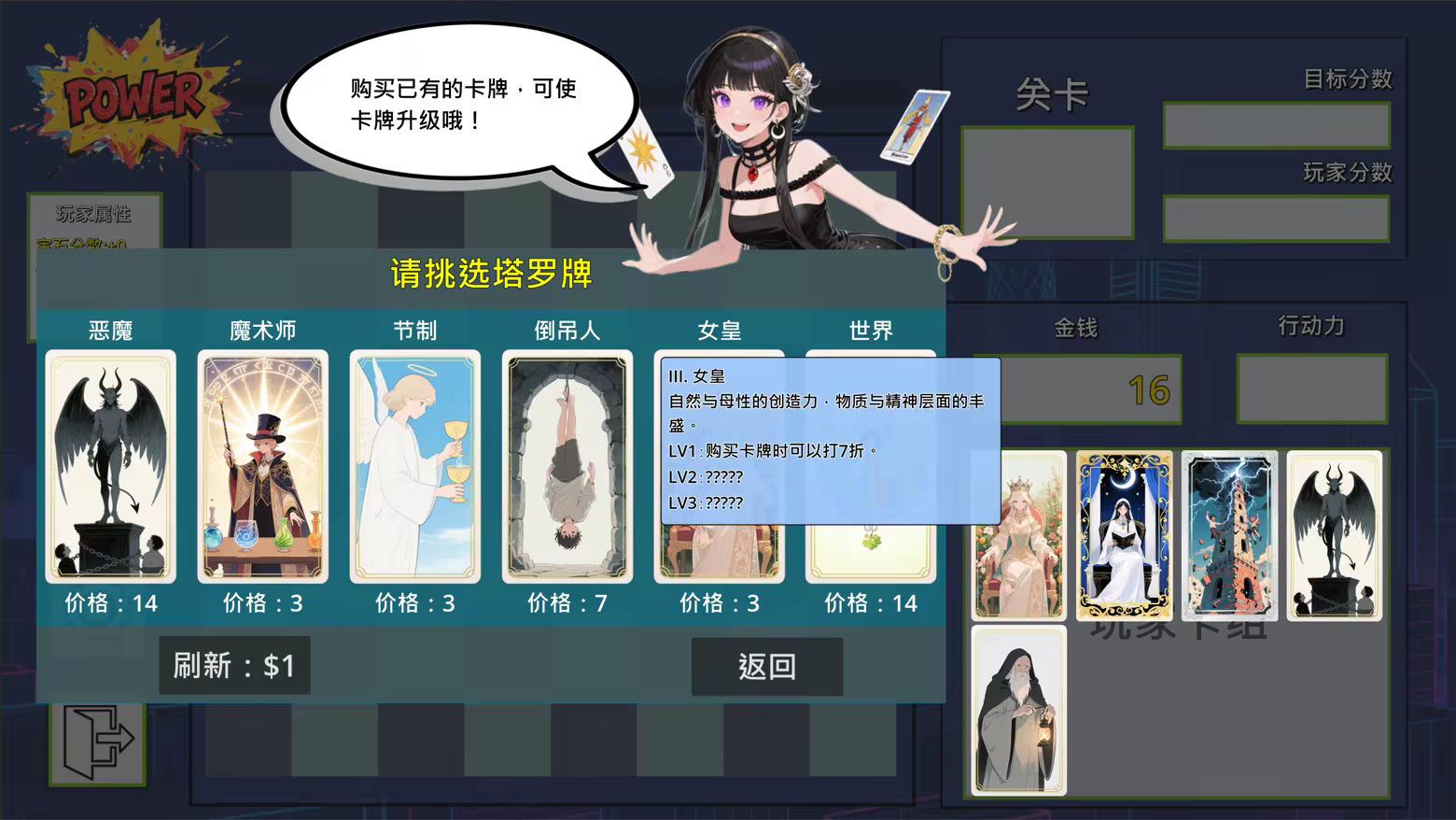 在妙趣横生的三消挑战中赚取金钱,前往商店从22张功能各异的塔罗牌中精心挑选。每一张塔罗牌都拥有3个可升级等级,丰富的组合将催生出无穷无尽的战术流派,让您的每一局游戏都充满新鲜感。