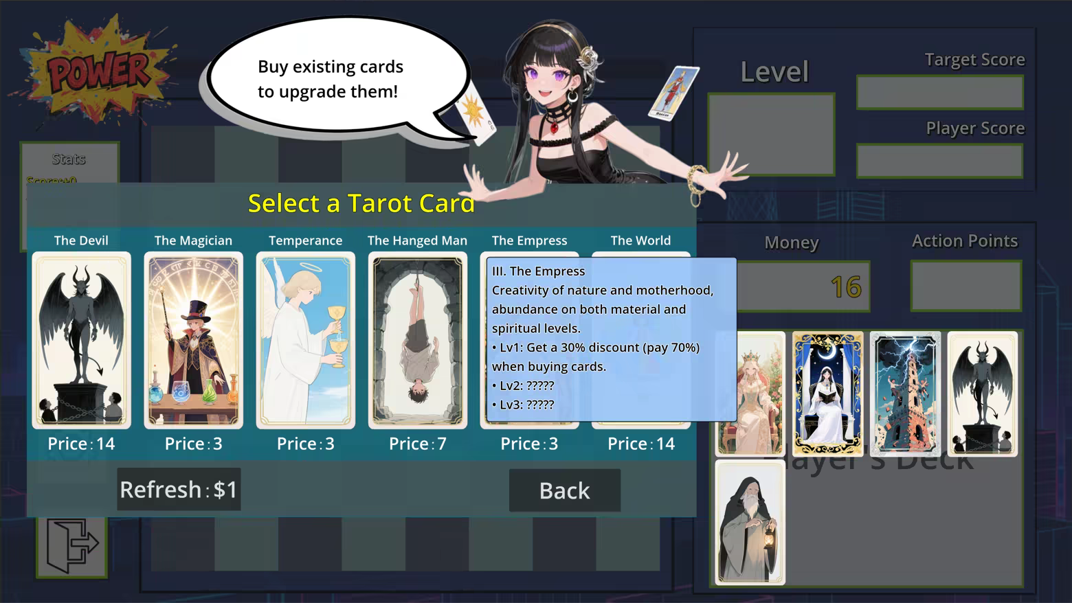 Earn coins through engaging match-3 challenges and visit the shop to carefully select from 22 uniquely powerful Tarot cards. Each card can be upgraded across 3 levels, and the vast array of combinations allows for endless strategic possibilities—making every run feel fresh and exciting.