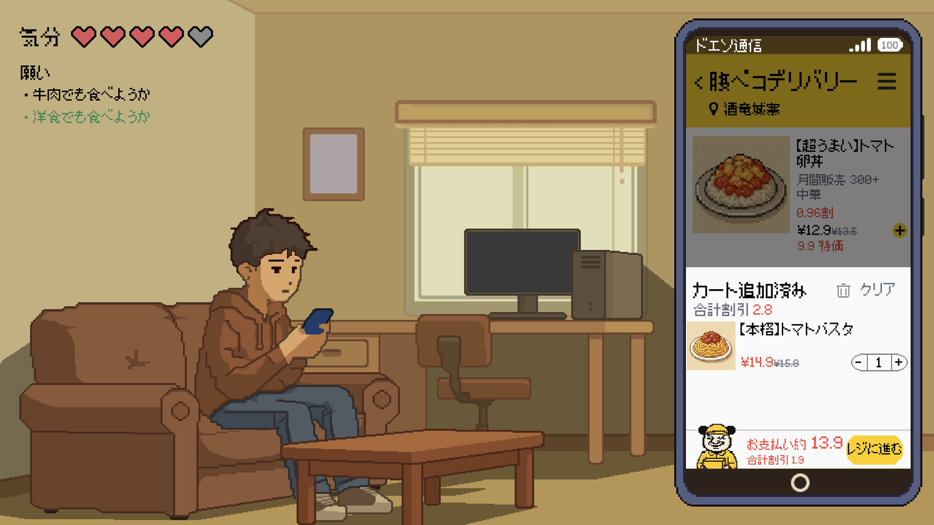 給料を使い果たし、次の給料日までまだ丸一ヶ月。スマホを開き、節約に励み、全ての出前クーポンを使いこなせ。あなたは次の給料日まで生き延びられるか?