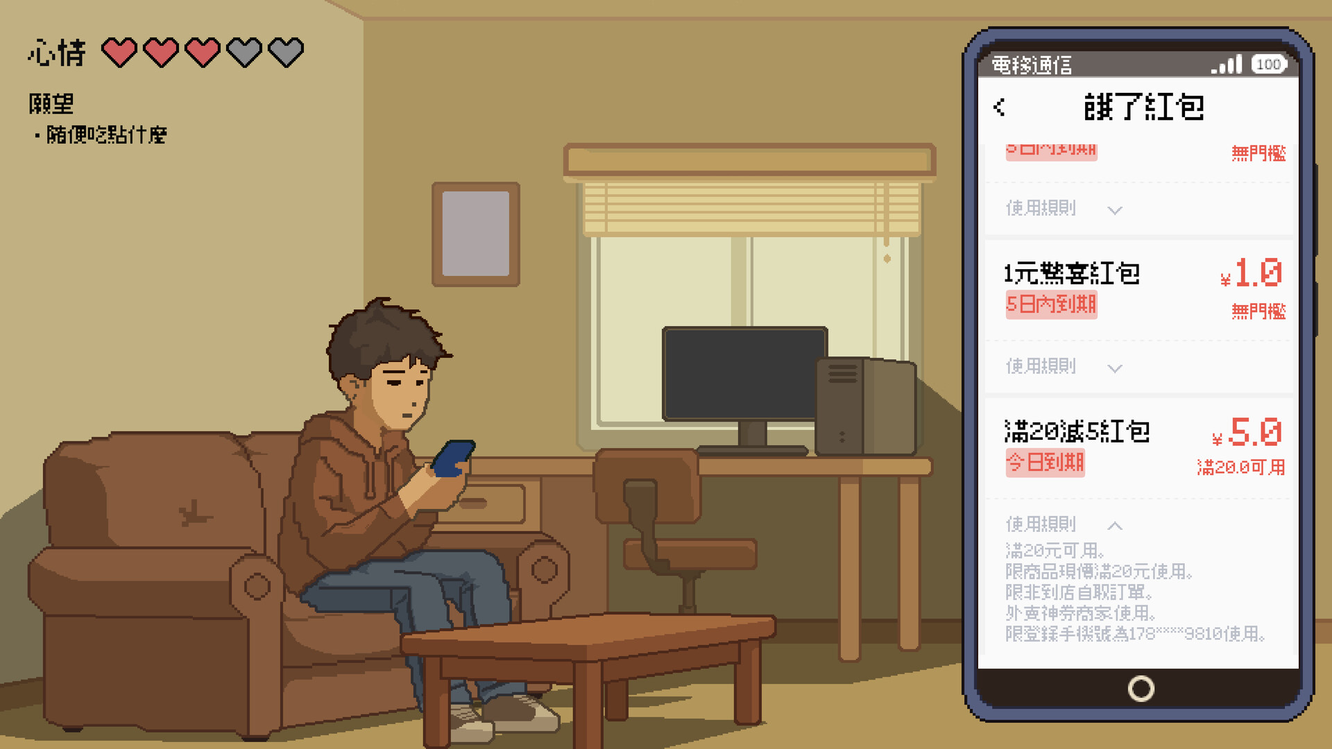 為了活下去,你必須成為一個精打細算的「折扣獵人」。遊戲的核心玩法都圍繞著這台模擬手機展開。