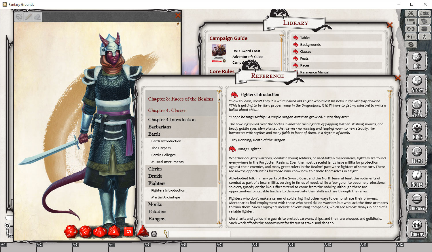 The free Fantasy Grounds virtual tabletop (VTT) software with the built-in 5E Ruleset.