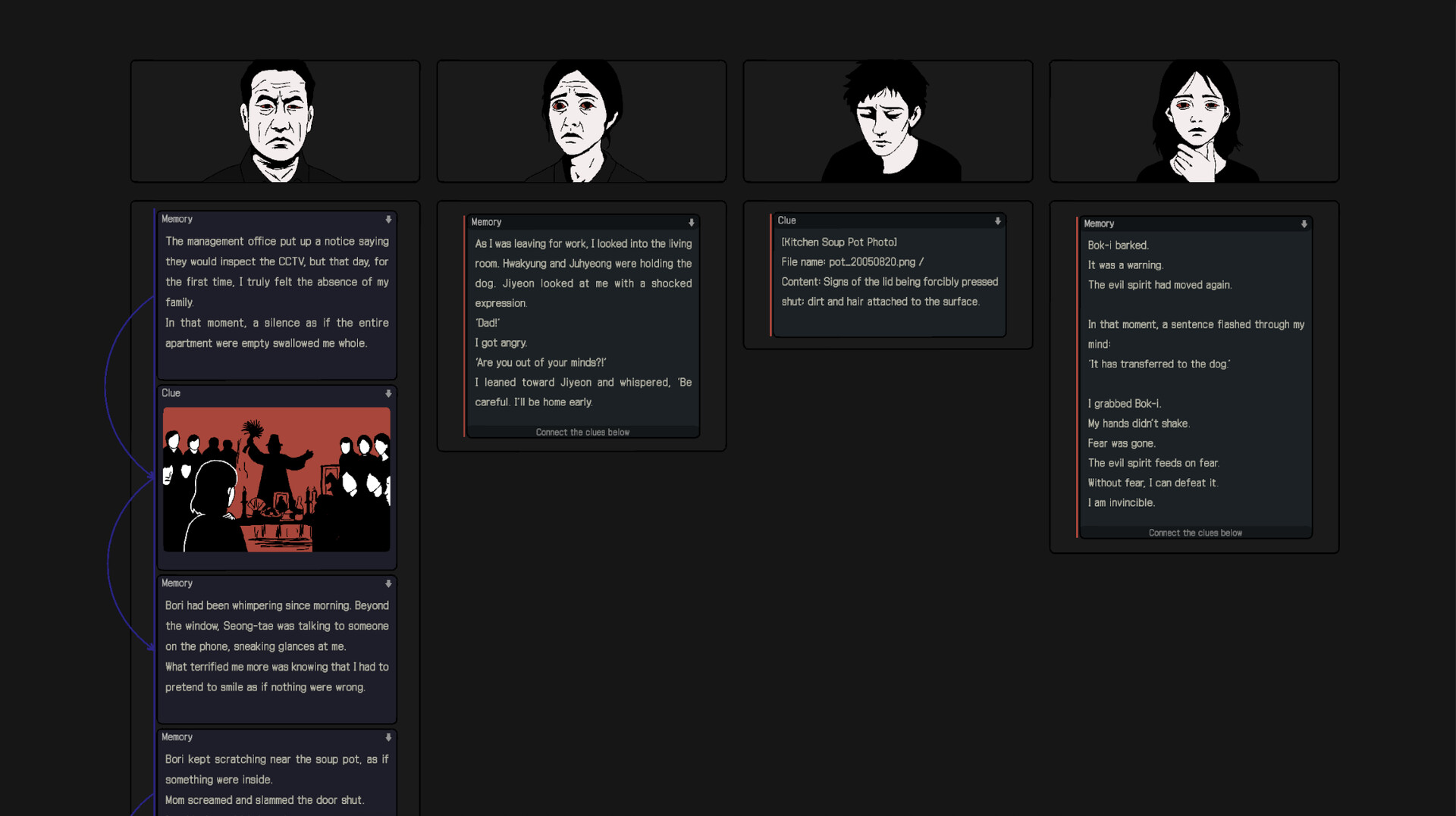 You must piece together the fragmented memories of different individuals and the traces they left behind to uncover the truth.
