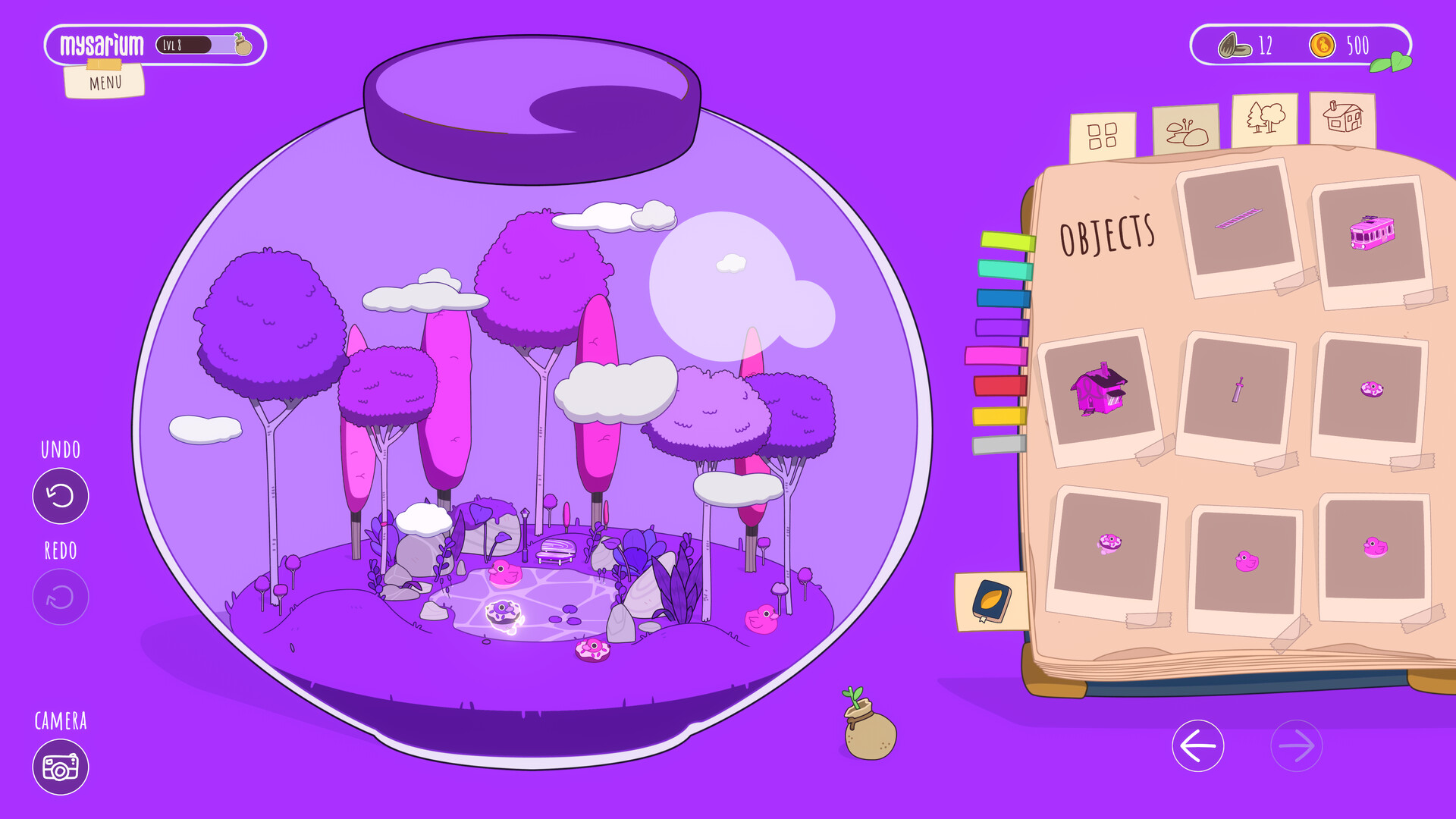 • Plant Your Achievements: Once earned, these trees become the stars of your terrarium. Use them to build personal compositions, playing with scales and tones to reflect your creative style.