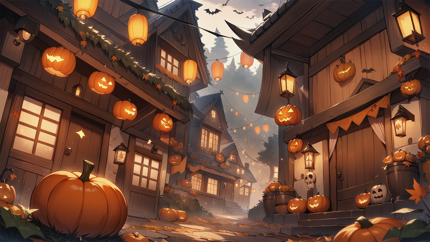 • Halloween Atmosphere: magic of the night, moonlight, and glowing pumpkins.