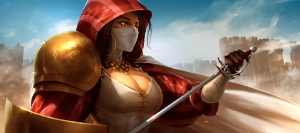 One of only a handful who bear the title "Valete", Kugua earned this honorary rank through selfless dedication during the Red Pestilence. Whether it was luck or scientific deduction that compelled her to don what would become her trademark mask, she managed to avoid the airborne sickness that took the lives of so many. Kugua's great golden pauldron earned her the nickname of "The Golden Saint" as she pursued her selfless rounds, caring for her city's sick and dying. (Result of GAMES2GETHER votes)