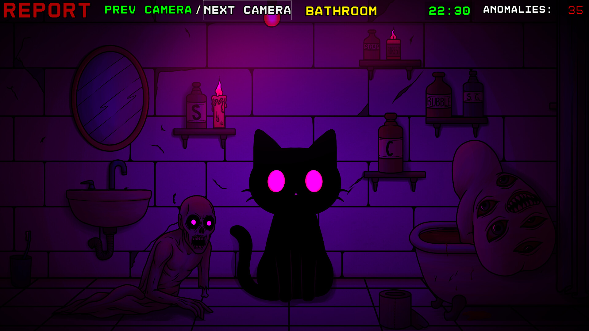 🐾 2D-хоррор про поиск аномалий. Наблюдай за уютными комнатами, запоминай каждую деталь и сообщай обо всём необычном. Смотри. Замечай. Сообщай. Доживи до 06:00 — и не доверяй коту.