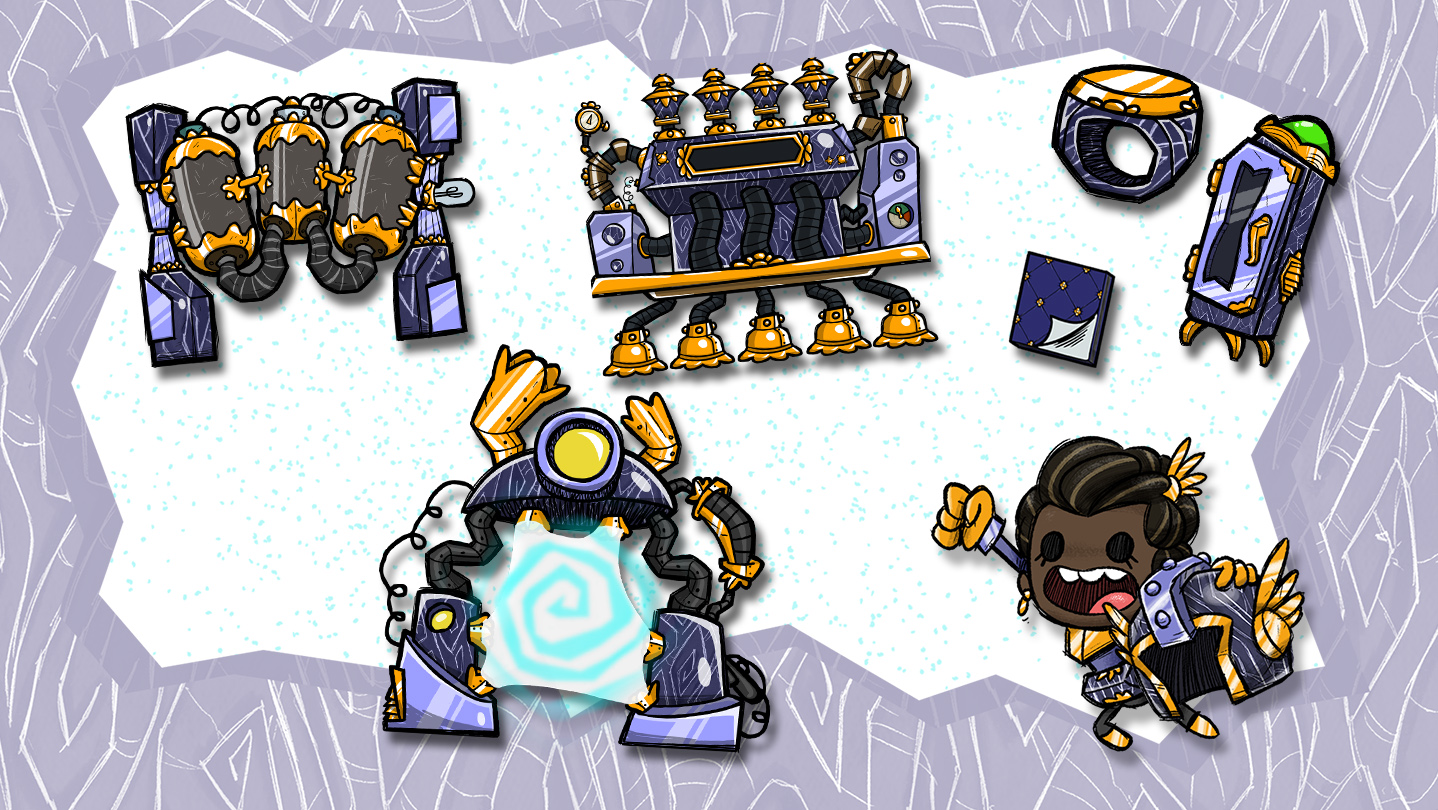 Has anyone ever asked what it'd look like if ONI buildings and atmo suits were made out of refined Neutronium? Or what a regal Duplicant might look like? Maybe, maybe not. Either way, we made this because our art team likes making cool things. This small themed collection of cosmetic blueprints is a tribute to outer-space opulence. Whether you want to class up your colony or you just like the idea of supporting our dev team's ongoing efforts to sustain and expand ONI, these are for you.