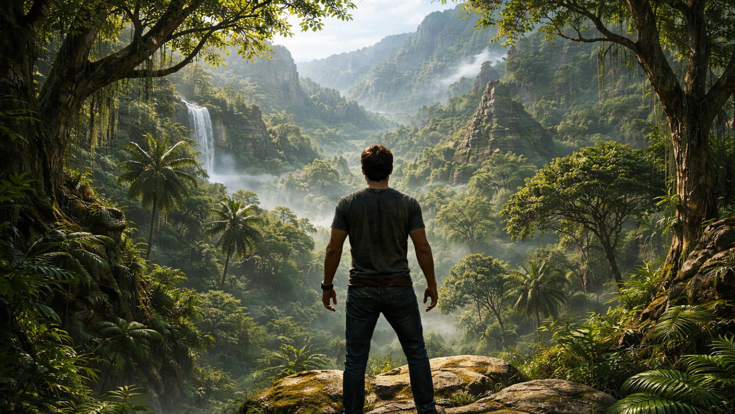 • Cinematic jungle and ruin environments