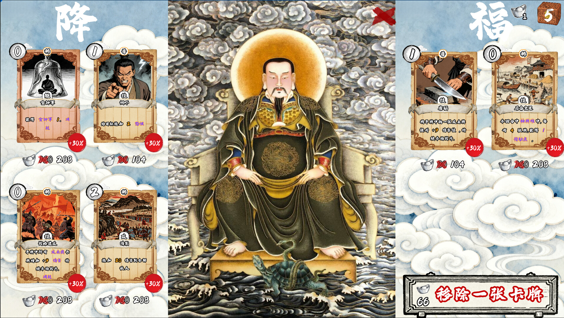 Authentic Historical Simulation: Players take on the role of an emperor, handling military and state affairs year by year. Each event is based on real history and will impact the dynasty's six key metrics, which in turn affect the outcomes of card battles.