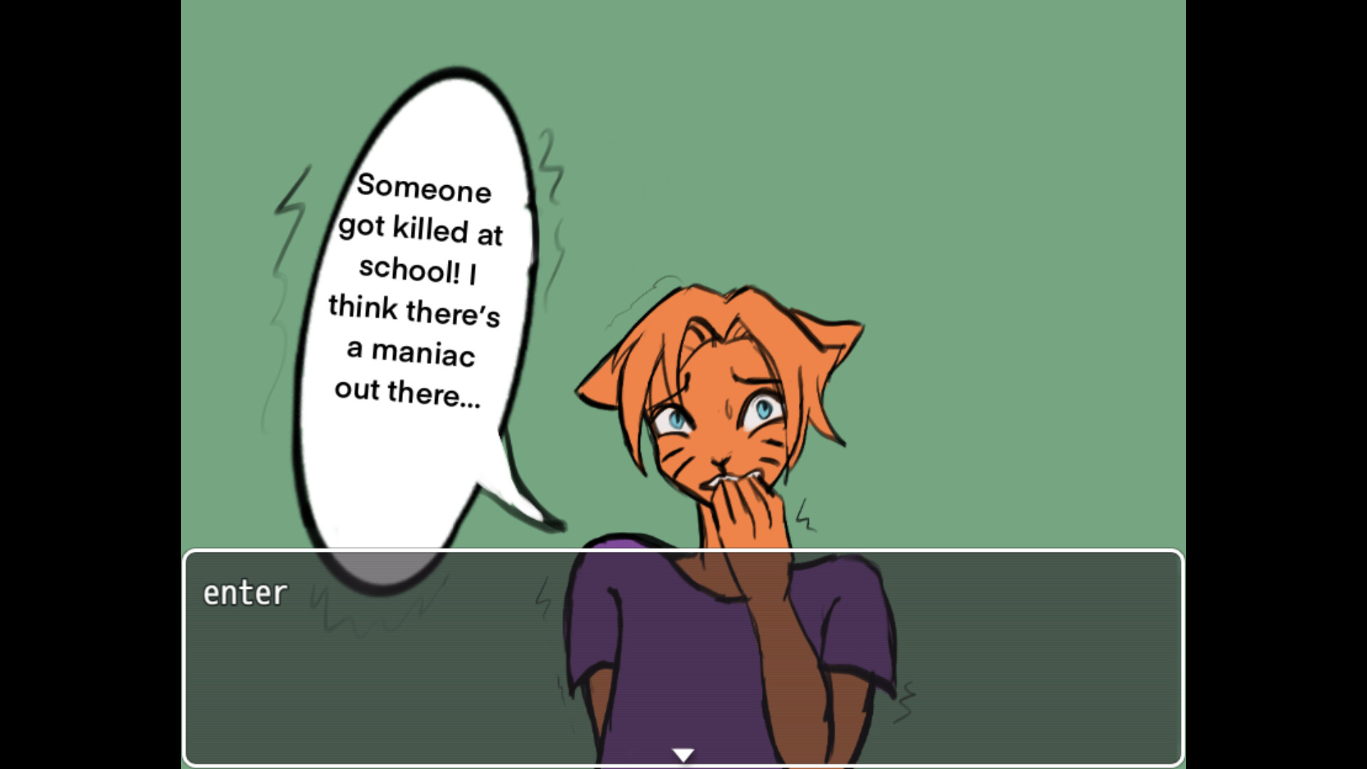 Nora & Riji: The Hole in the Ghetto is a stylized detective RPG with a sharp dose of absurd humor. You are Nora, a black-furred feline outcast with a traumatic past, and Riji, your fame-obsessed PR manager. Investigate a mysterious murder at your school while managing the ensuing media scandal and mastering a unique combat system where you must defeat your enemies without killing them. Solve the murder. Manage the scandal. Become legends.