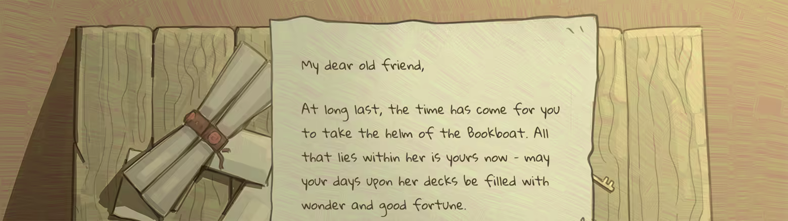 As the new owner of a book boat, you are entrusted with returning a single page of a book and embarks on a journey through a world both mysterious and familiar. By solving intricate puzzles and piecing together scattered clues, you uncover the truth of the world - and of yourself.