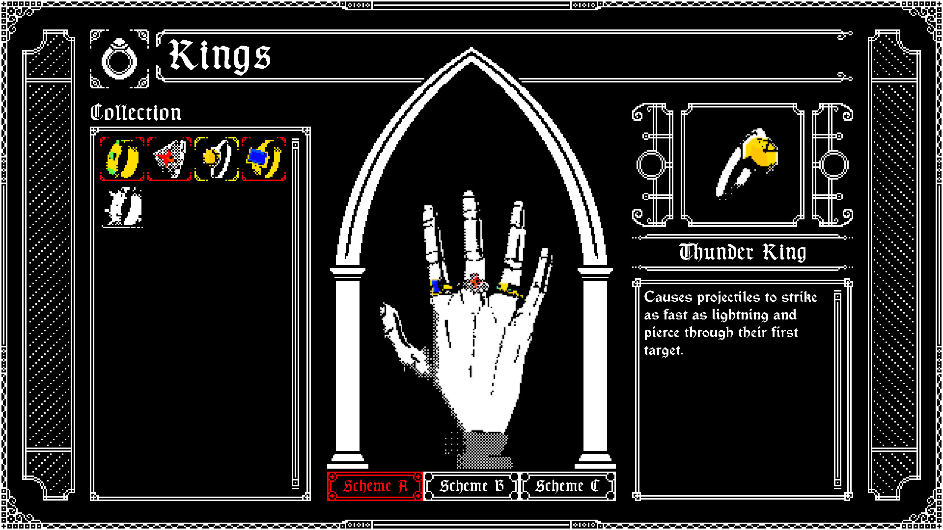 As your descend into the caves, you will find many rings of power that can enhance your attacks and affect your weapons. By combining these rings in creative ways, you are able to craft powerful spells that will tip the scales in your favor.
