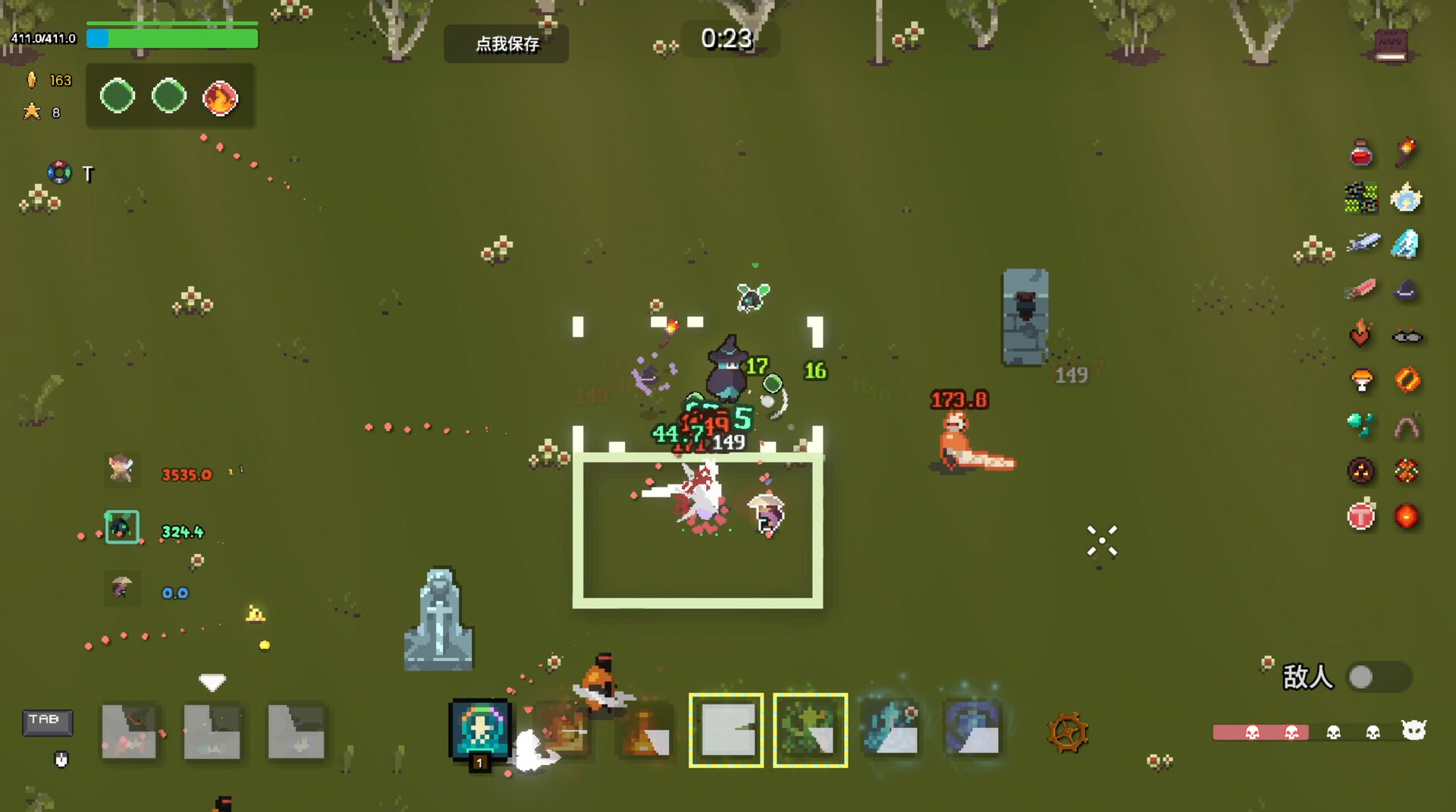 • Progression Roguelite au cours de la partie avec objets aléatoires.