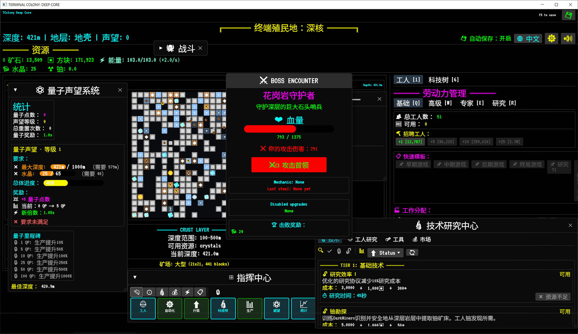 科技树:跨越基础/进阶/量子三层研发体系,解锁实质性升级并支持T键快捷操作