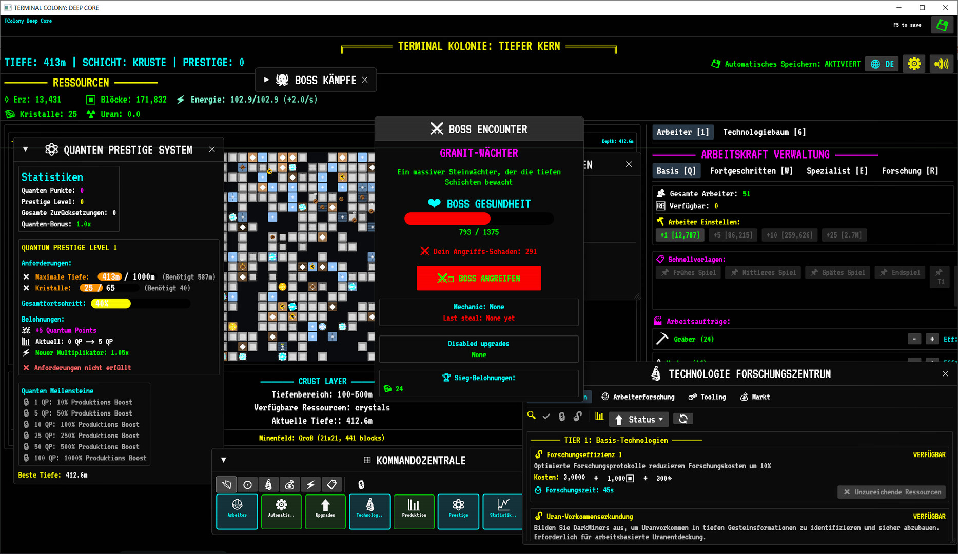 Grabe tief, verwalte Arbeiter, erforsche Technologien und stelle dich den Geheimnissen des Quantenuniversums in diesem inkrementellen Mining-Spiel im Terminal-Stil.
