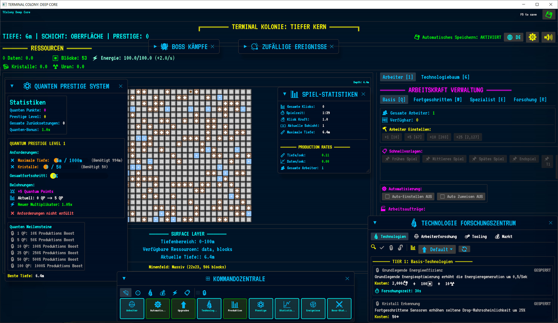 Grabe tief, verwalte Arbeiter, erforsche Technologien und stelle dich den Geheimnissen des Quantenuniversums in diesem inkrementellen Mining-Spiel im Terminal-Stil.
