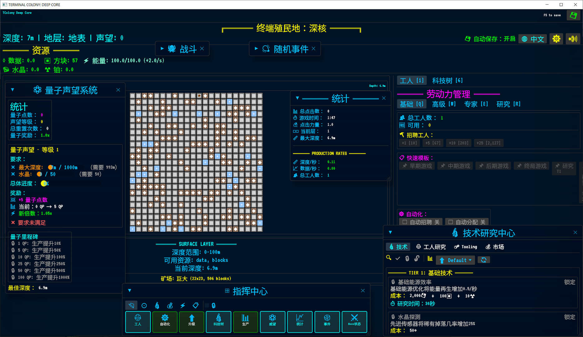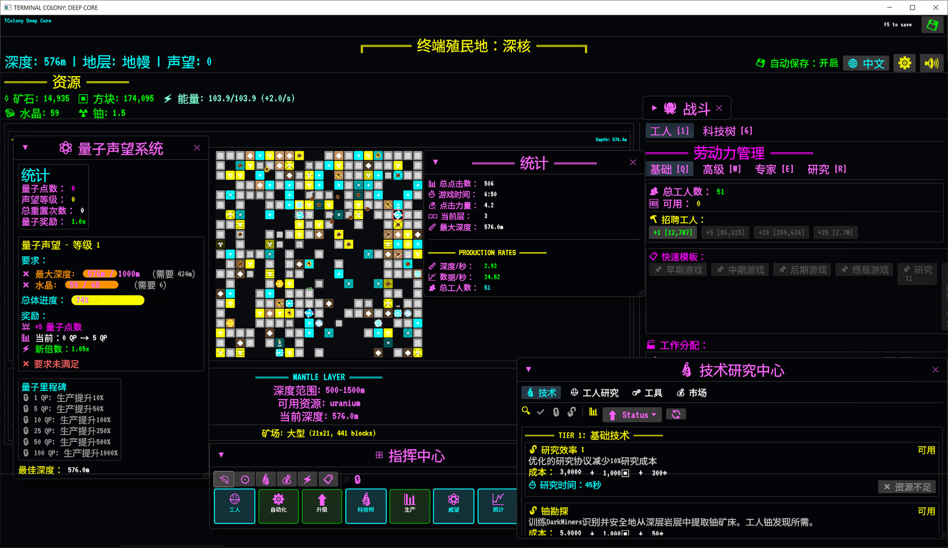 科技树:跨越基础/进阶/量子三层研发体系,解锁实质性升级并支持T键快捷操作