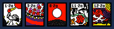 • All cards show their month (1–12) and point value (20 / 10 / 5 / 1) in Arabic numerals