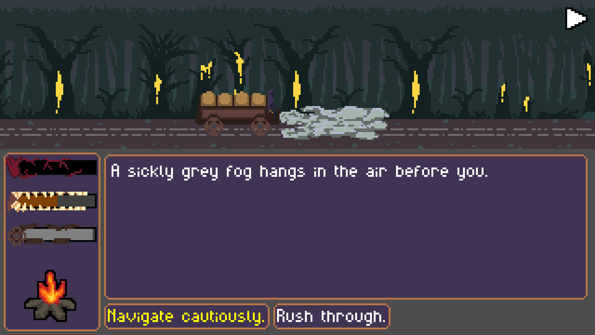 • Resource management: survival will require you to maintain your Supplies, Rations, and Scrap.