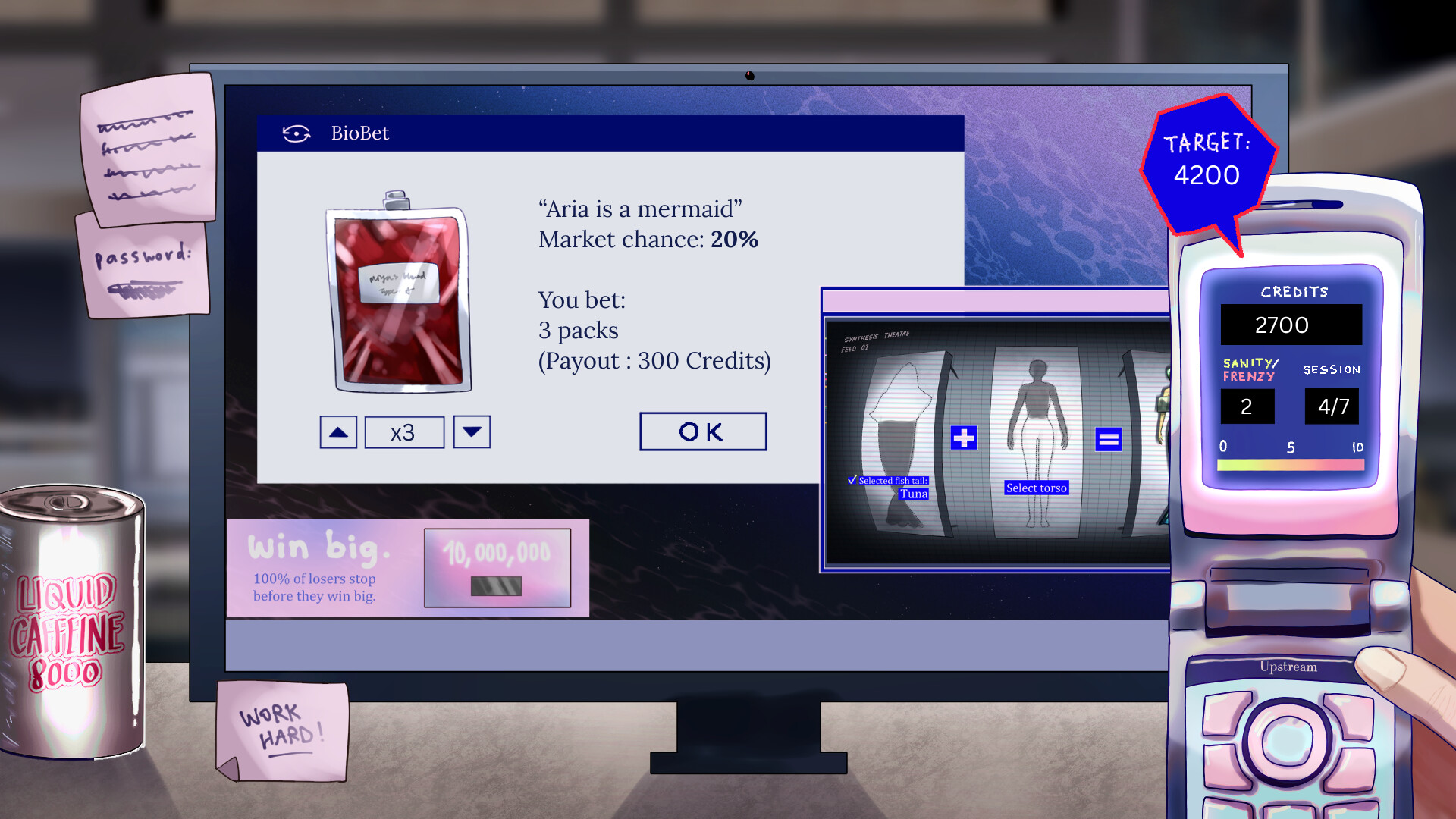 Gamble your blood, upgrade your luck with insider deals, and maybe sew fish tails onto human torsos. Are mermaids more like fish, people, or monsters? Will you save them, or sell them to pay off your debts? This is a psychological horror game where choices matter.