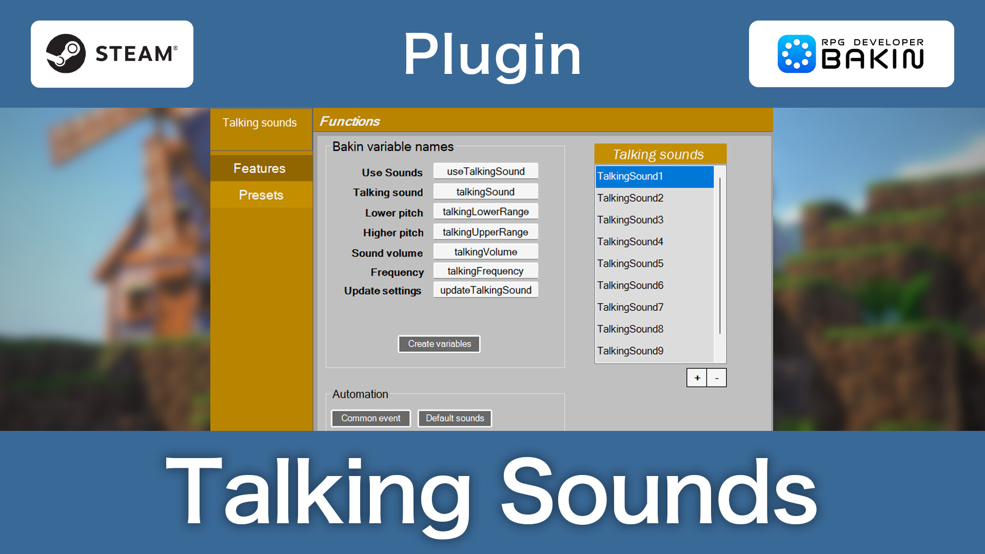The "Talking Sounds" plugin lets you play sound effects during message display, creating the illusion of characters speaking. By adjusting pitch, volume, and panning, you can give each character a unique vocal feel—perfect for enhancing your game's dialogue with a more professional and immersive touch!