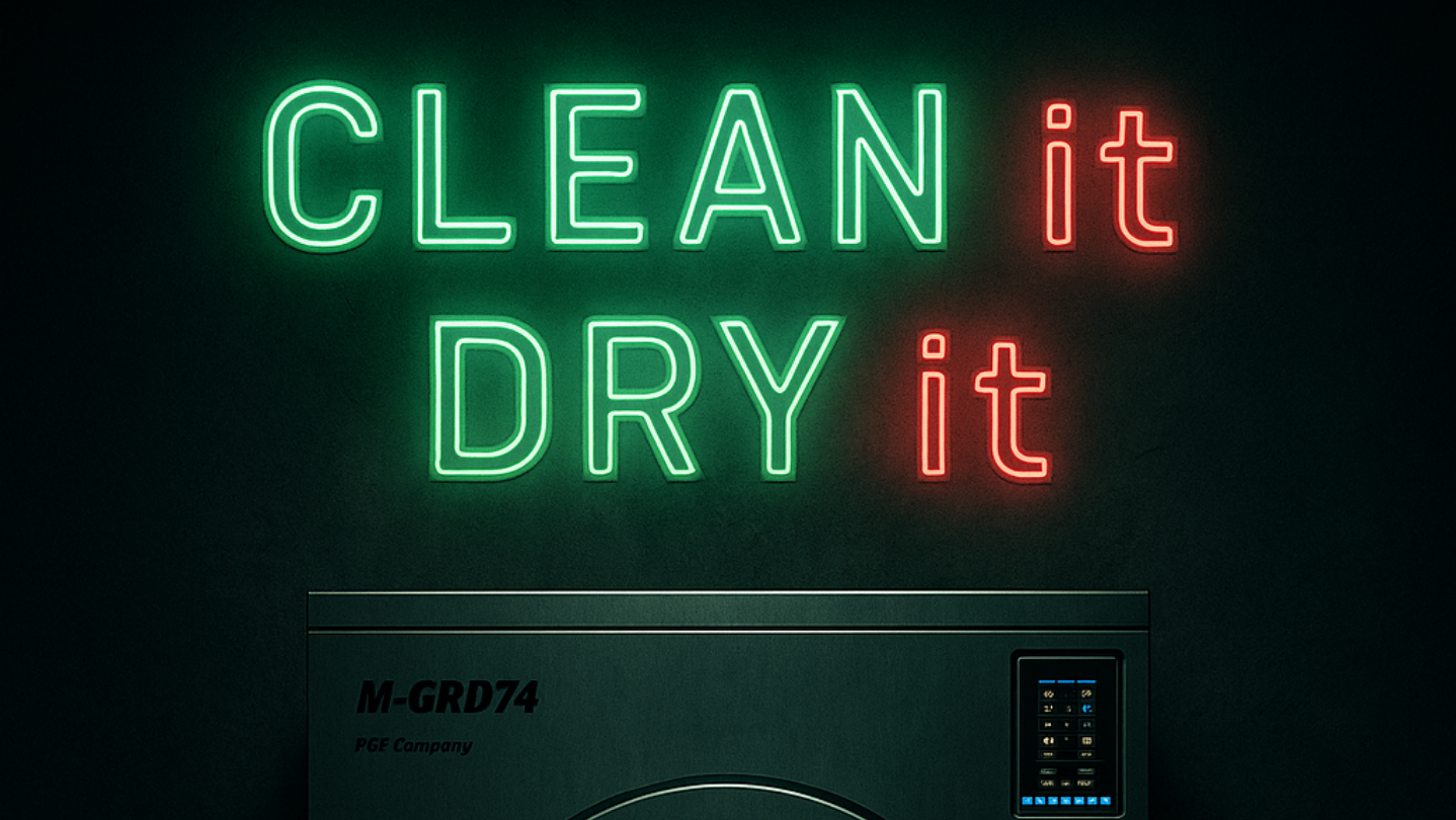 The slow spin of laundry under dim light...