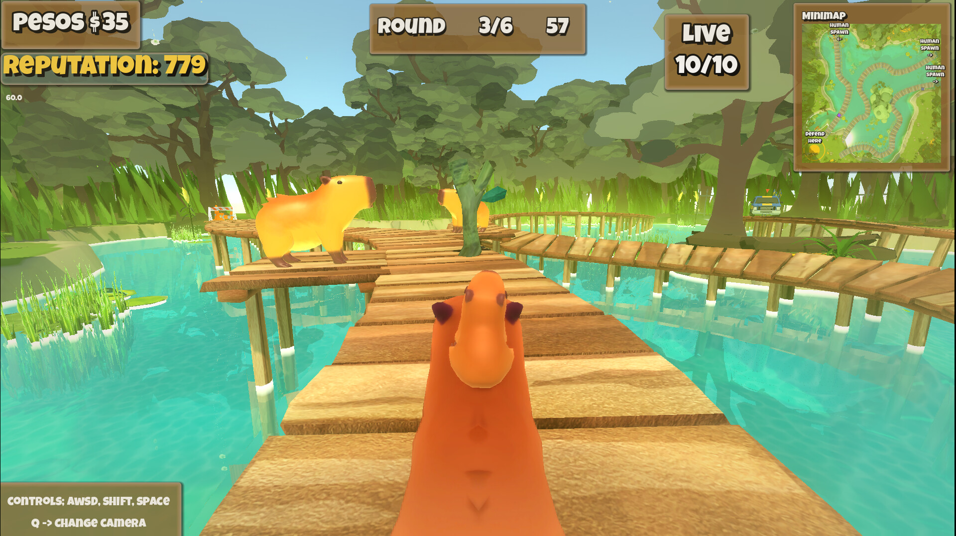 On this demo, You Will be able to play one level of one biome, protecting your family against waves of human invaders in this physics-based tower-defence. Be a Capybara on a third-person camera, pushing or throwing frogs at silly humans until they fall into the water! Get money and place obstacles or buy towers to defend your wetland!