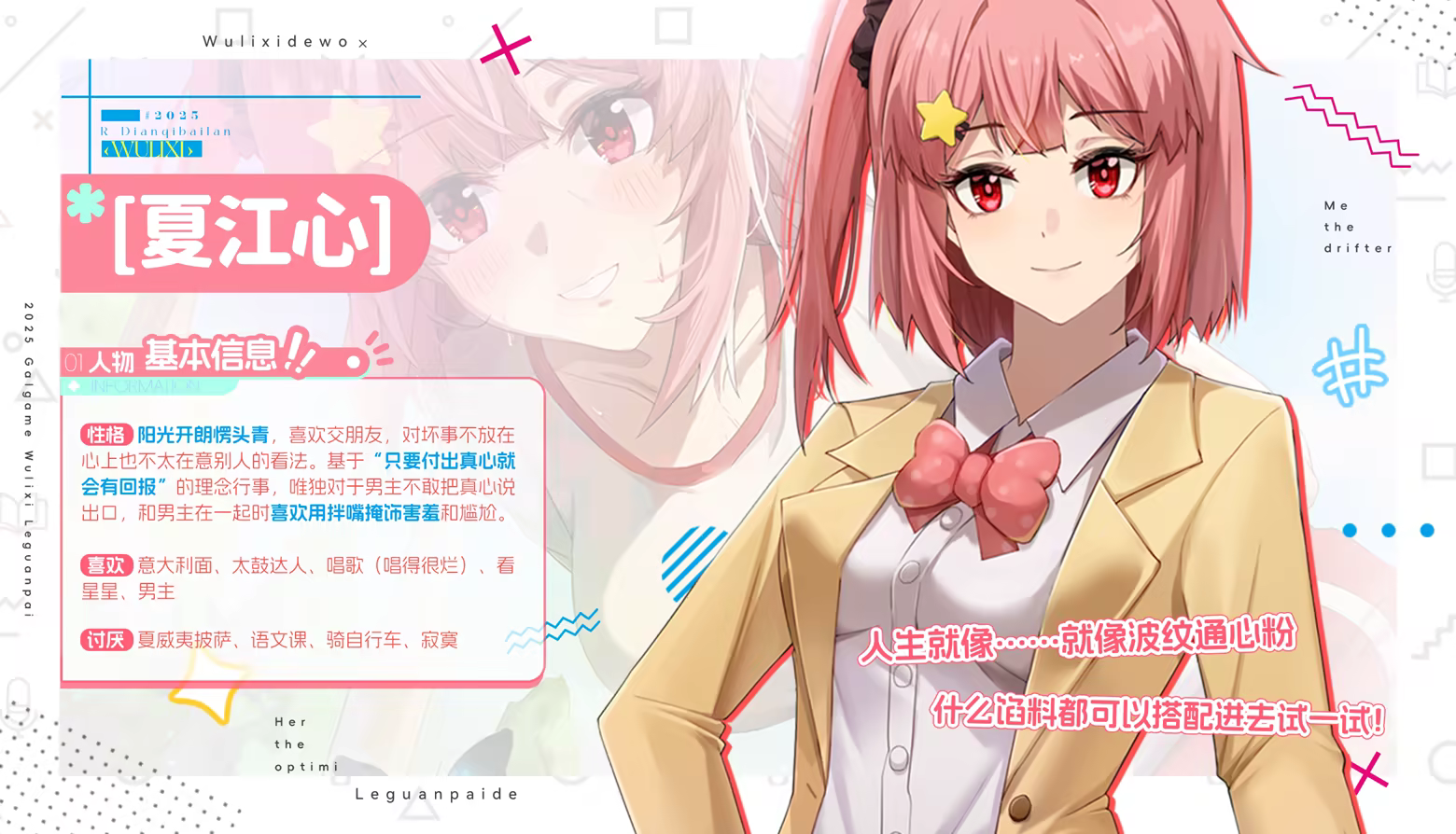 As a pure love work with a single heroine and a single ending, the story has approximately 120,000 characters—equivalent to more than one volume of a light novel. It plans to include over 20 sets of original CGs, more than 10 sets of SD illustrations, one original theme song and one image song, full voice acting for key female characters , a pure love Happy End, and a sweet After Story…