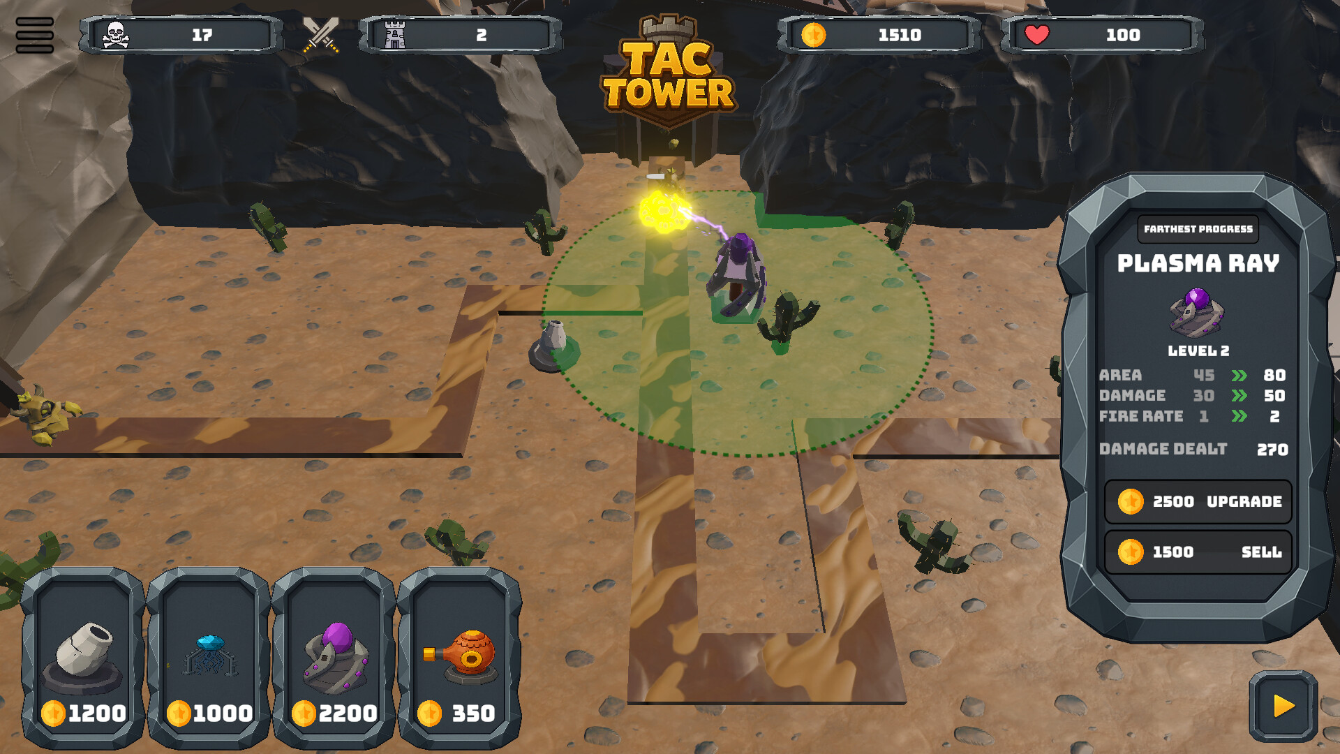 Tac Tower is a strategic 3D tower defense game where every decision shapes your survival. Build powerful towers, defend against waves of unique enemies, and master different maps — from scorching deserts to frozen lands. Upgrade, adapt, and prove your tactical genius in the ultimate battle for domination!