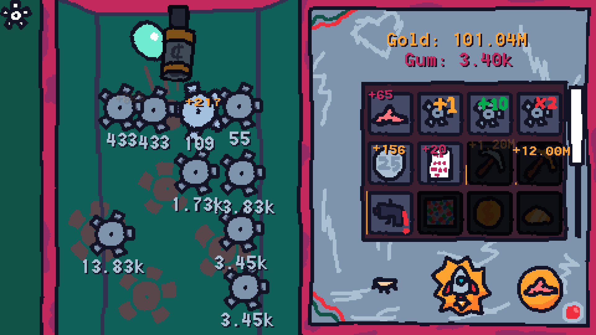 A short and relaxing Plinko-style incremental game where you shoot gumballs at gears and buy upgrades to make bigger and bigger numbers until you break the game! Enjoy the explosive sense of achievement!