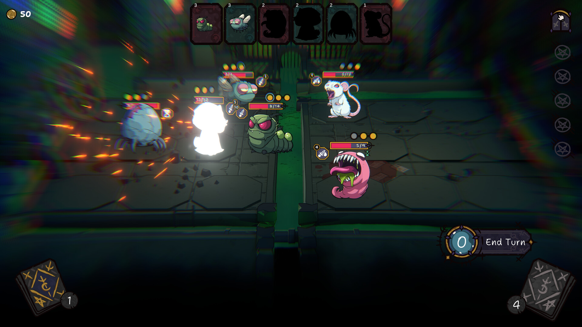 Command a growing army of summoned companions. Minions attack, defend, trigger effects, and interact with your deck and mutations, forming the tactical backbone of every battle.