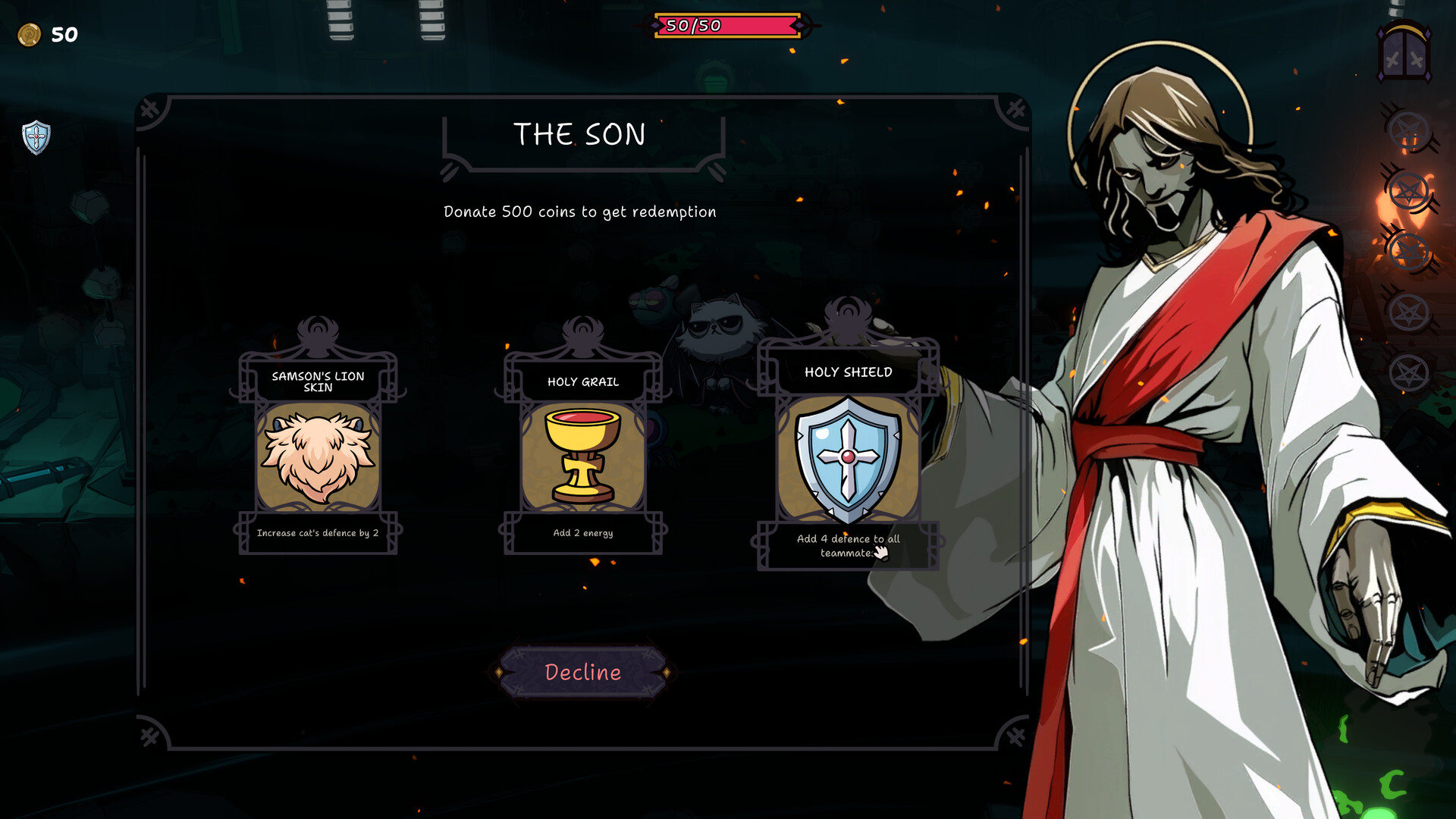 Ein düsterer Roguelike-Deckbuilder, in dem du als satanische Katze spielst und dich zu einer höllischen Abscheulichkeit verwandelst. Führe rundenbasierte, taktische Kämpfe gegen infernale Horden, beschwöre unheimliche Diener und baue verfluchte Tarot-Decks. Mutiere … oder stirb.