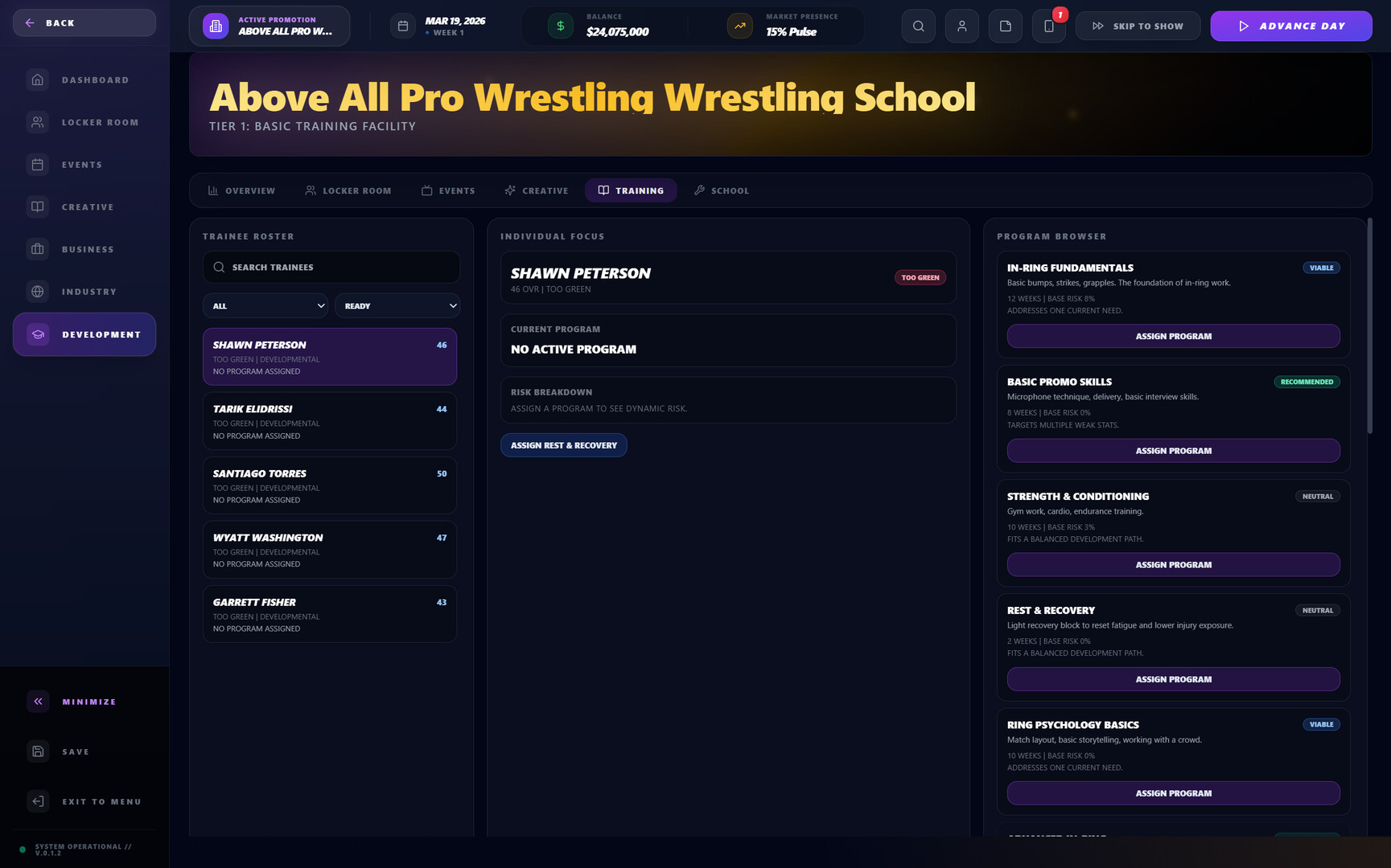 Decision-making, pressure, and consequences define everything. Momentum shifts. Wrestlers remember. The industry moves with or without you.
