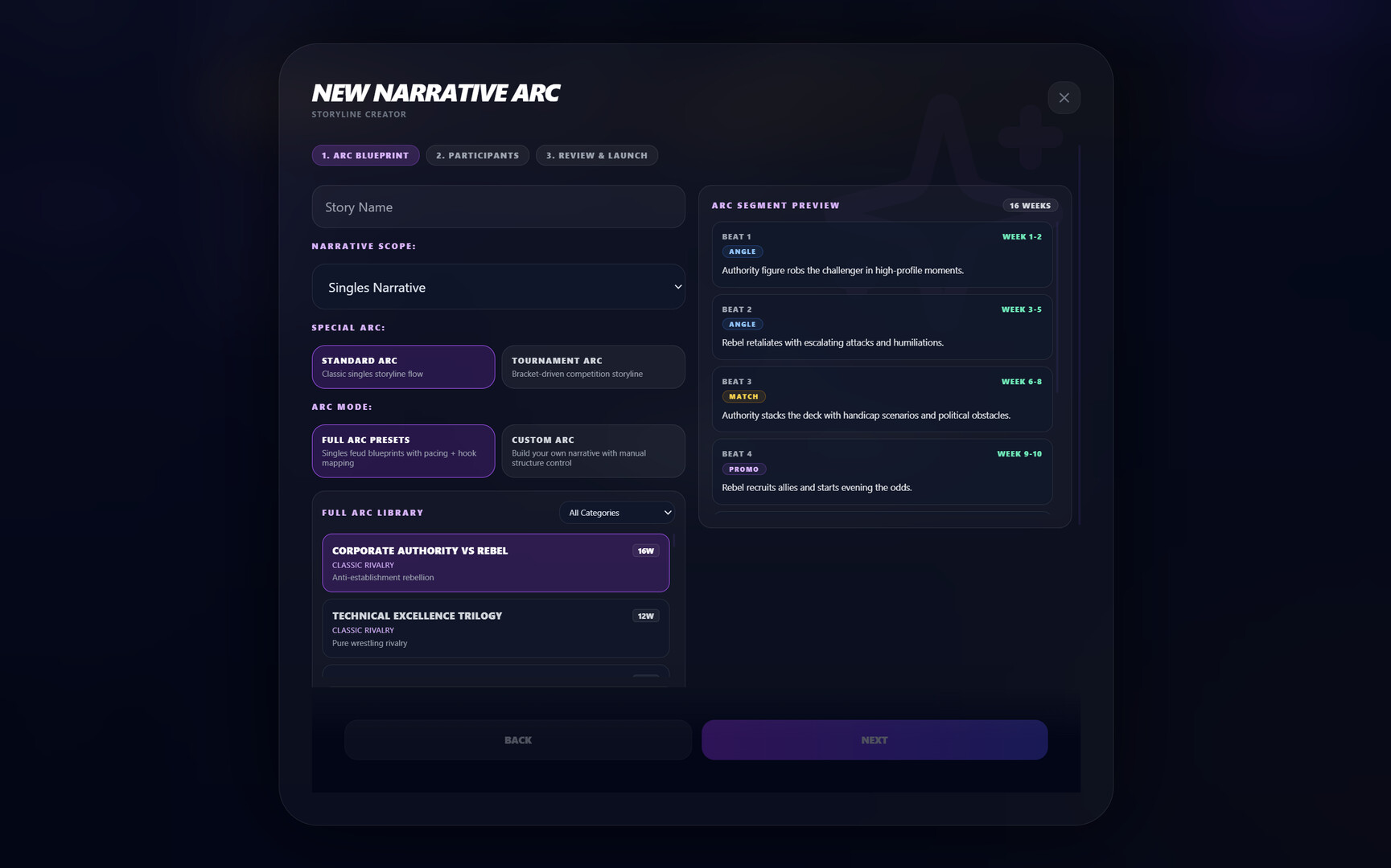 • Deploy Angle Hooks (betrayals, debuts, attacks) from a library or create your own