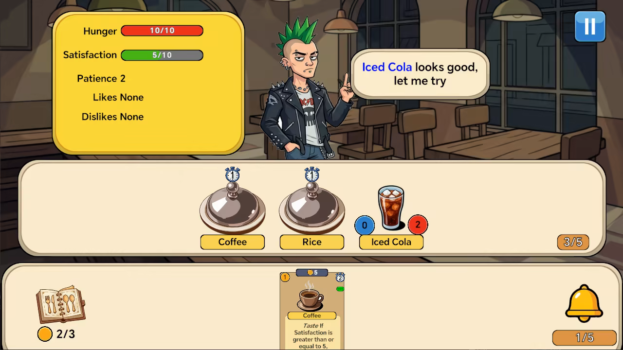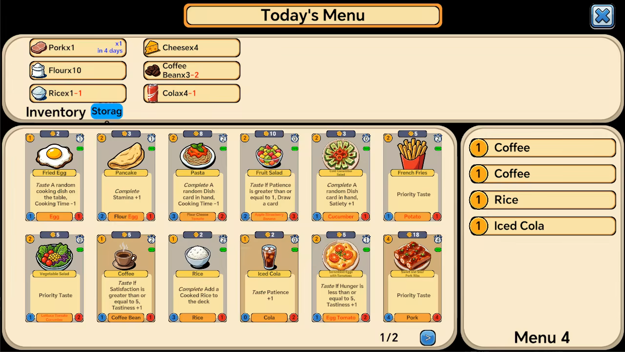 • By using cards, select the corresponding cuisine to satisfy different customers
