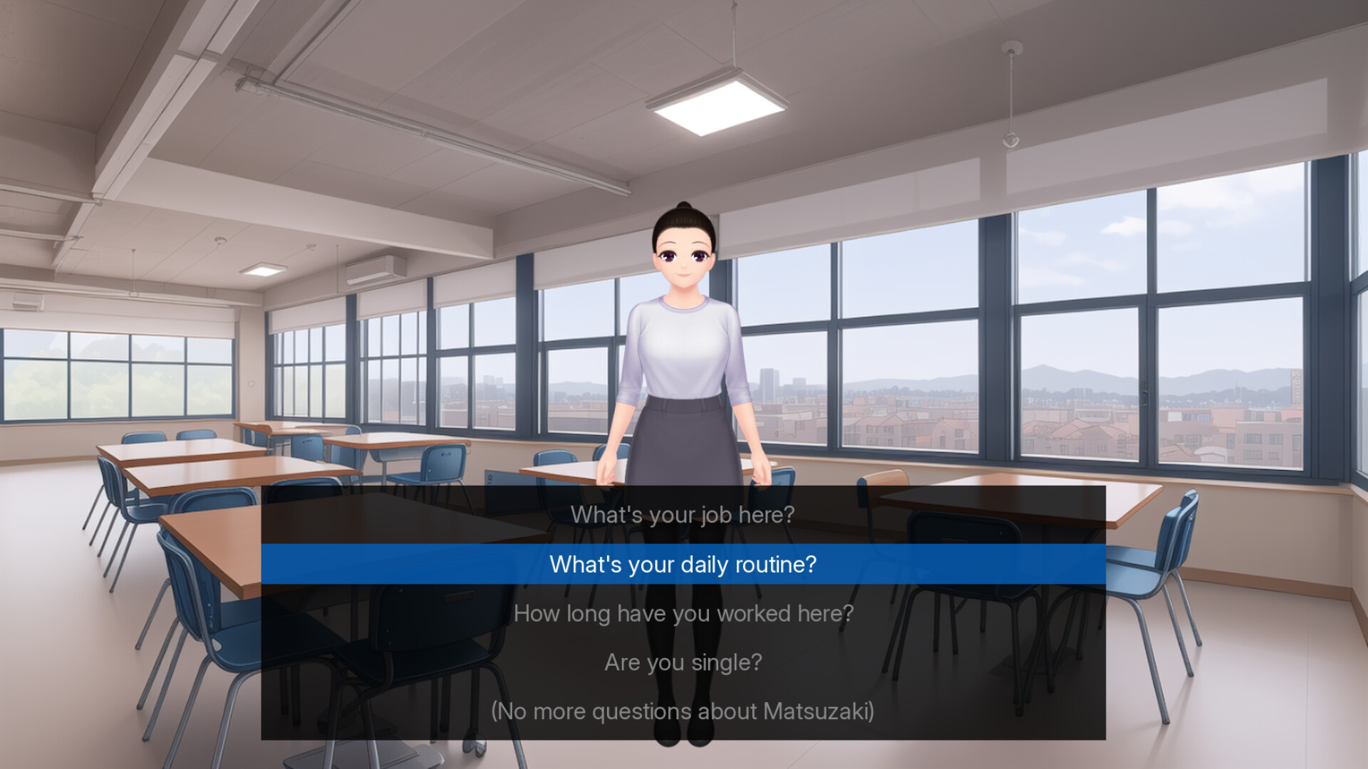 -Enjoy an atmospheric visual novel game, with diverse locations and captivating ambience.