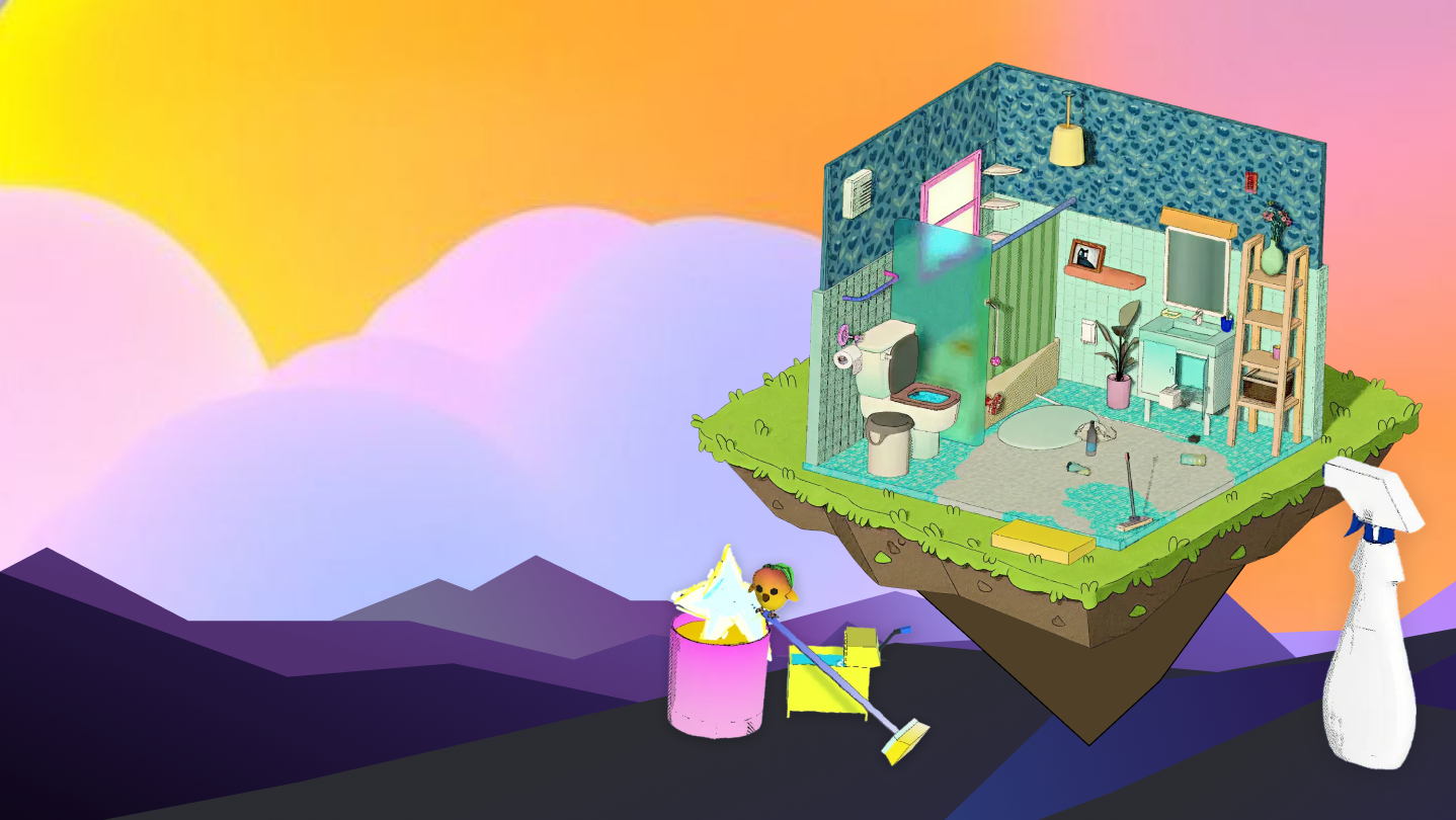 “Lofton Oasis” is a cartoon-style cleaning game full of messy, doodle-like physics and playful interactions.