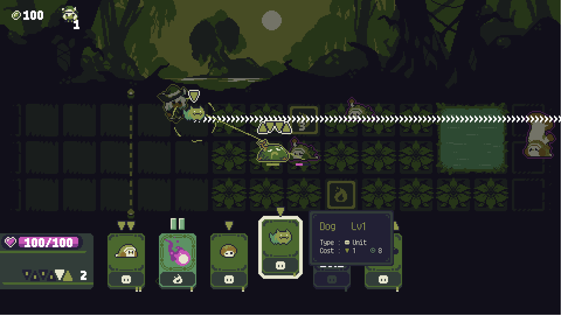 "Nightcap Witch" is a rogue-lite strategy game where you fight using a limited number of units. Build a deck of 8 cards and defend the spring from the encroaching horde of nightmares. Can you drive away the nightmares and reclaim your peaceful sleep?