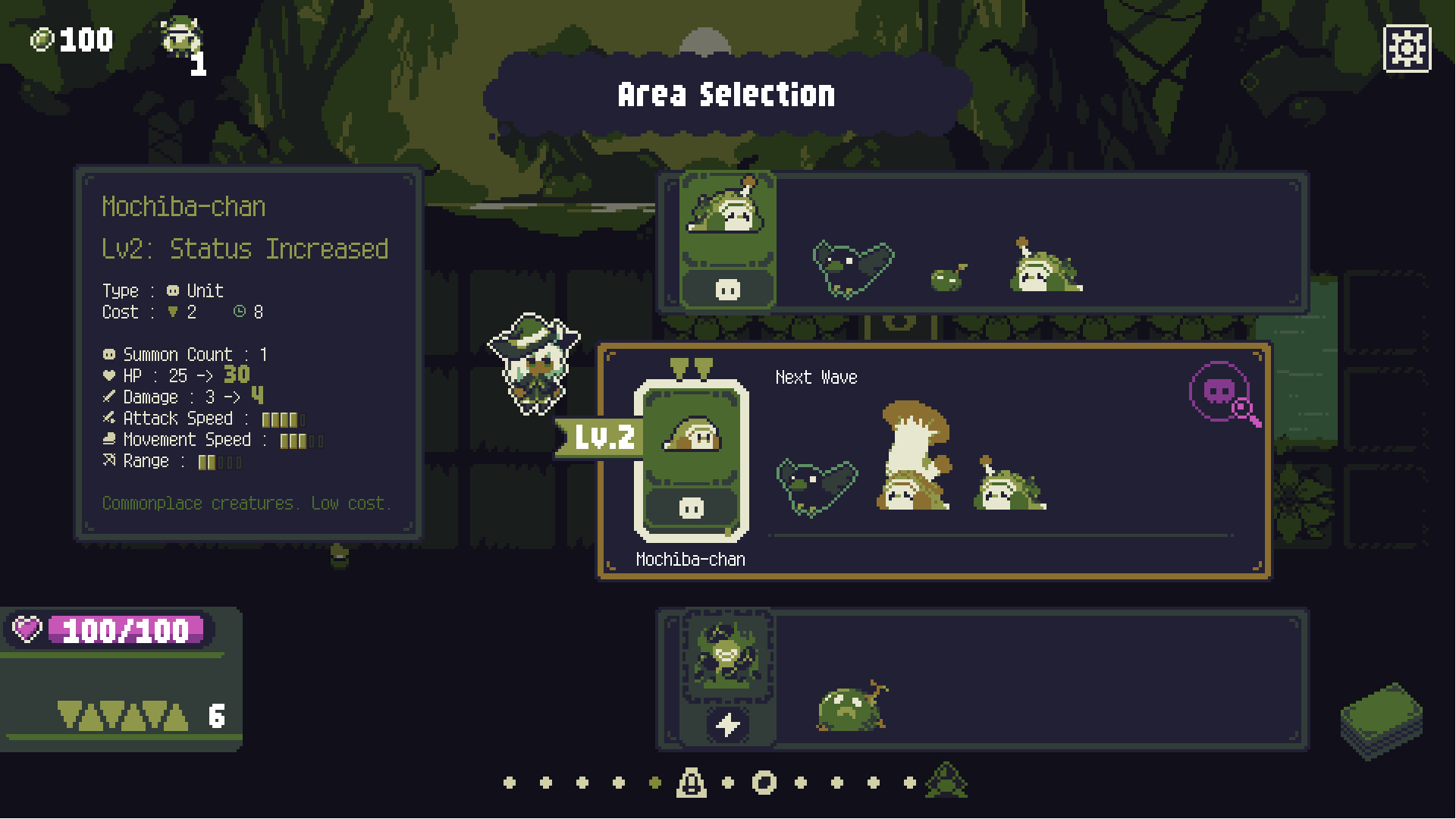 "Nightcap Witch" is a rogue-lite strategy game where you fight using a limited number of units. Build a deck of 8 cards and defend the spring from the encroaching horde of nightmares. Can you drive away the nightmares and reclaim your peaceful sleep?