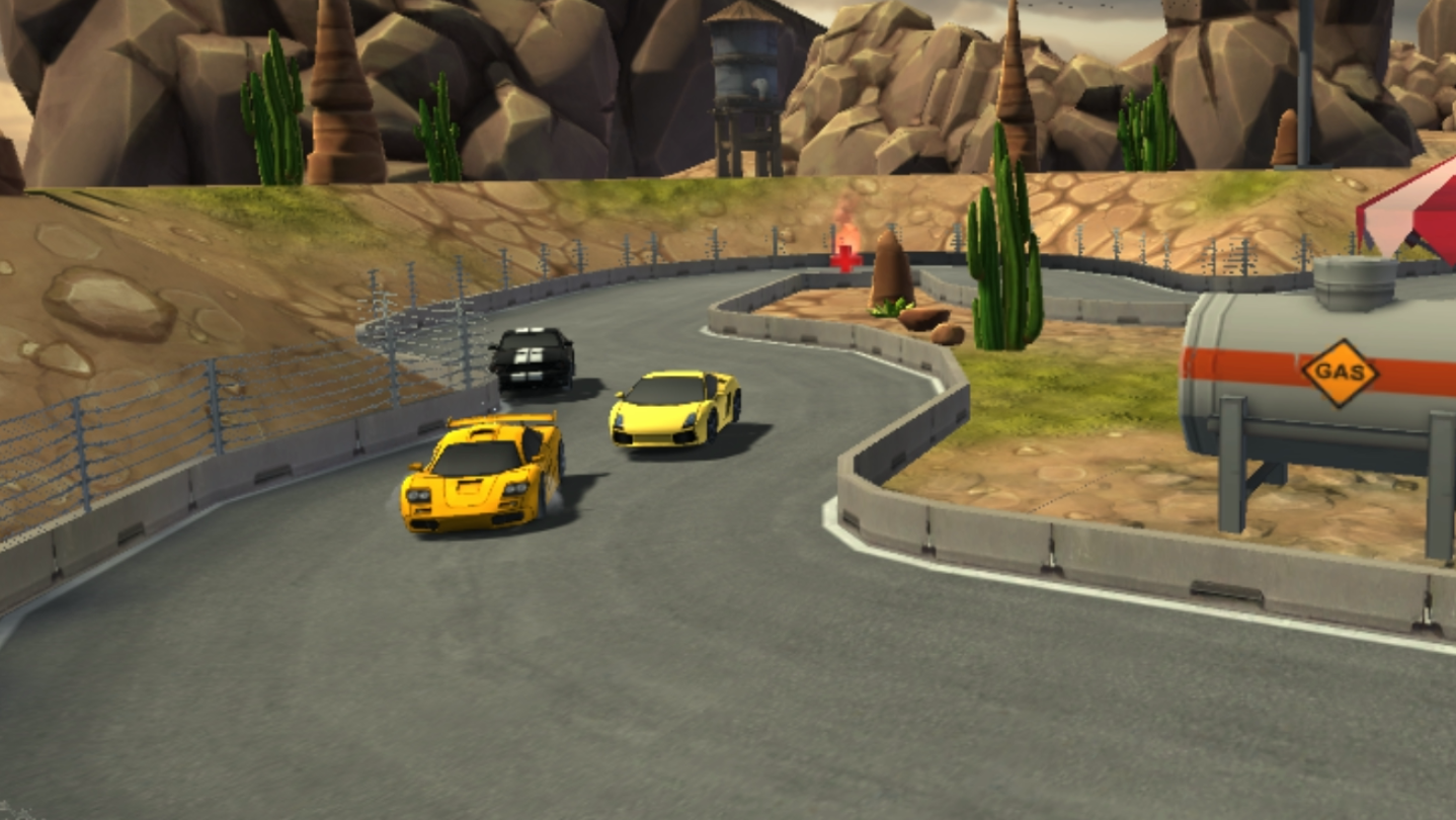 Avoid contact with the other racers to keep your car in one piece, or else you might find yourself in a fiery wreck. Use helpful power ups found around the track, like car repair packs, protective force fields, and even speed boosting nitro. But watch out, your opponents can use those pickups as well, and might fight you for them.
