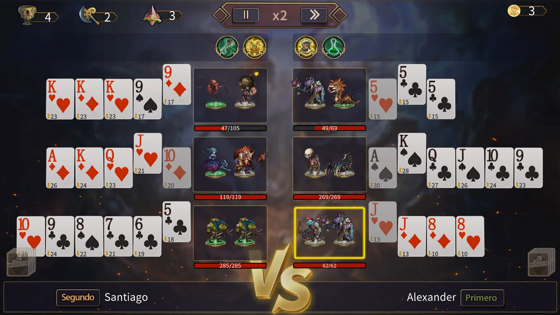 Poker Heroes es un juego de estrategia asíncrono casual que combina manos clásicas de póker con construcción de héroes. Ensambla escuadras, crea estrategias de mazo y duela contra oponentes — sin esperas en tiempo real, solo diversión táctica cuando quieras. Modo casual para partidas rápidas, escalera para desafíos progresivos, perfecto para pausas cortas o inmersiones profundas.