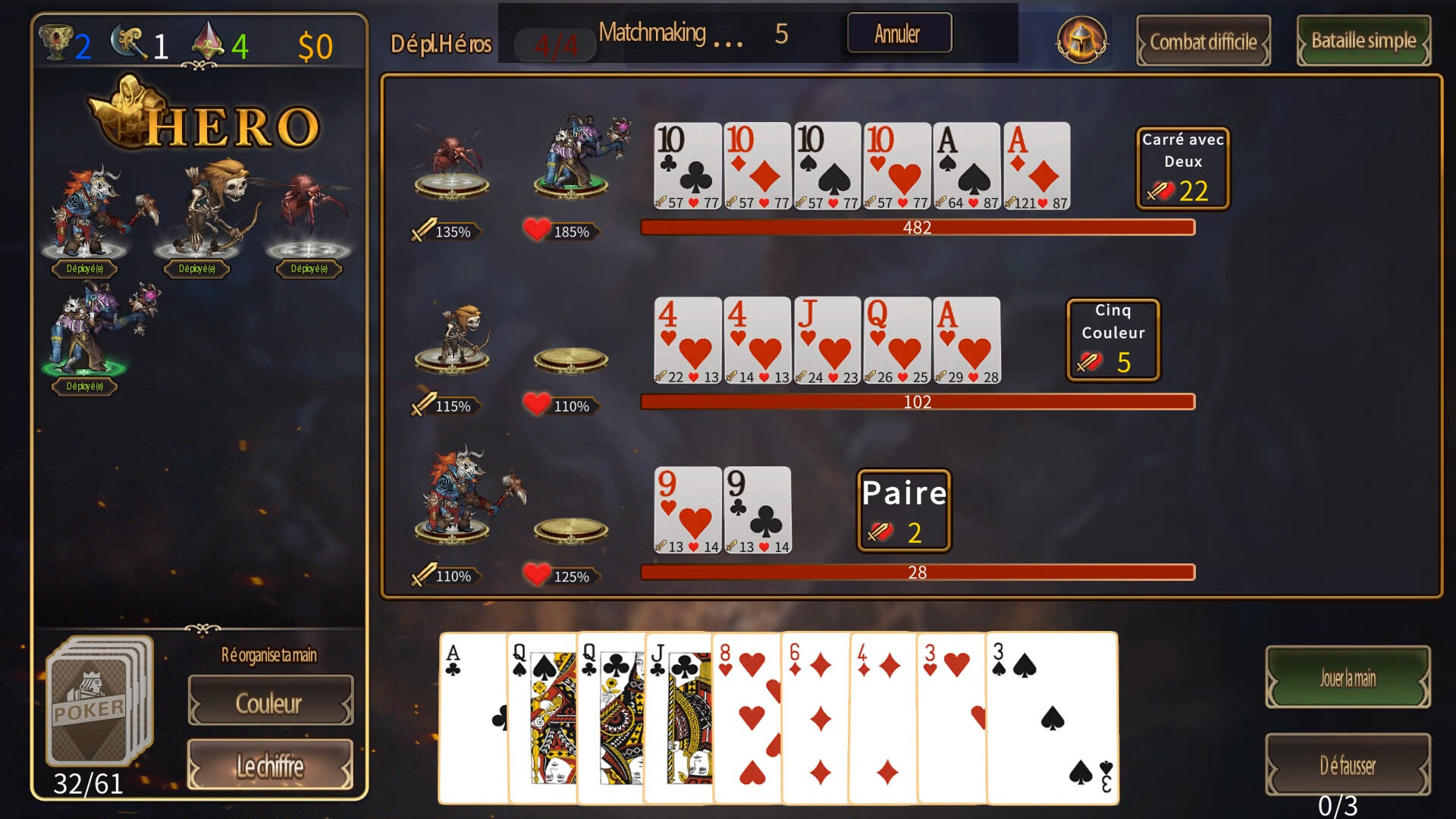Poker Heroes fusionne poker, héros, tarot et reliques mystiques dans un jeu de cartes stratégique asynchrone décontracté. Assemblez escouades d'héros, concevez decks ingénieux, et duel à tout moment—sans attente, matching facile, plaisir stratégique avec twists.