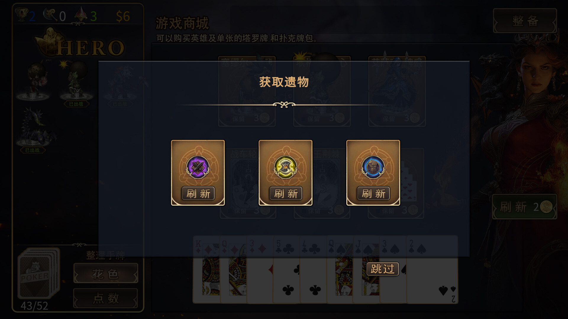 • 养成与准备:从商店获取英雄、塔罗牌与遗物,调整小队阵容,构建牌局框架。融合牌型组合与塔罗遗物效果,预设你的战斗节奏。