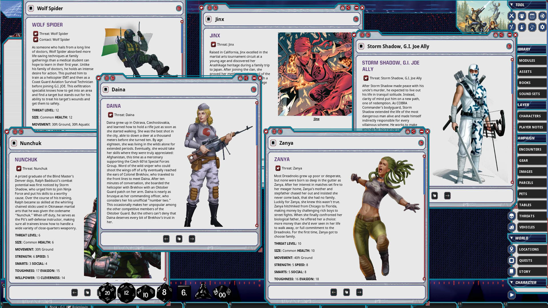 • Contact and Threat stat blocks for key members of each faction, including multiple versions of the long-awaited Storm Shadow!